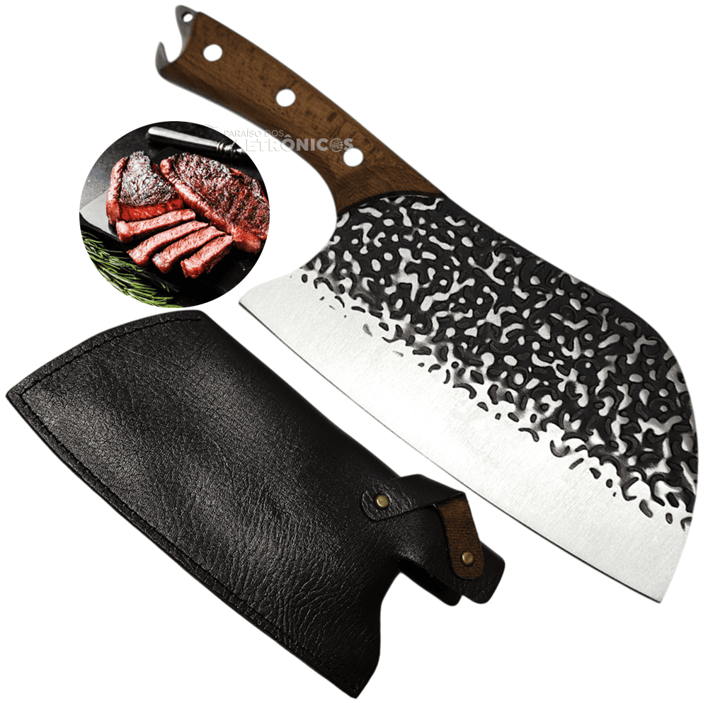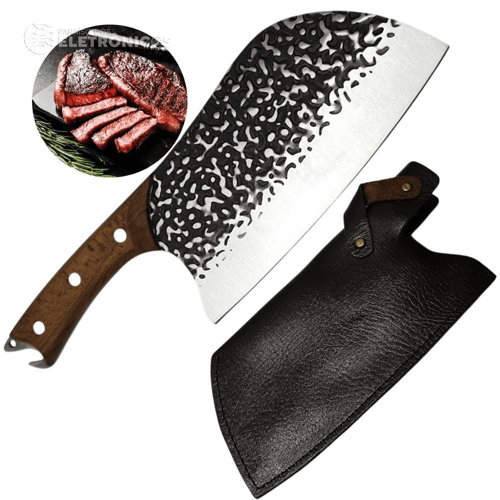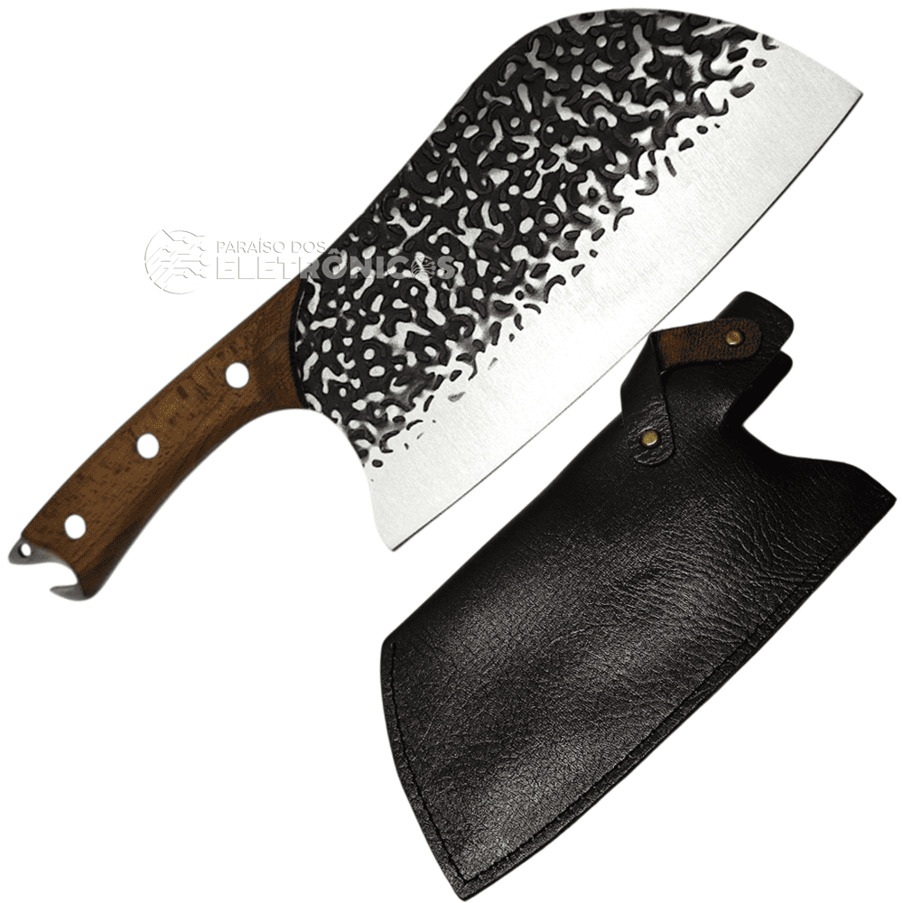 A Faca Cutelo Premium é a escolha ideal para quem busca potência, precisão e estilo na cozinha ou no churrasco. Com lâmina larga e robusta, ela foi projetada para oferecer cortes firmes e eficientes em carnes, legumes e peças maiores, garantindo desempenho superior em cada uso. Seu acabamento diferenciado na lâmina agrega personalidade ao produto e destaca o visual profissional.