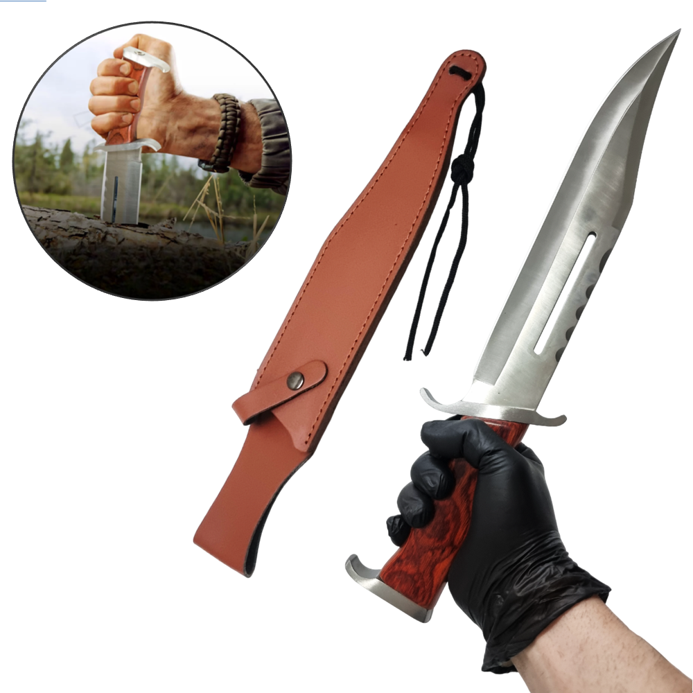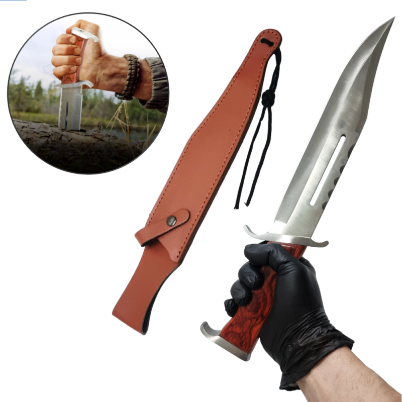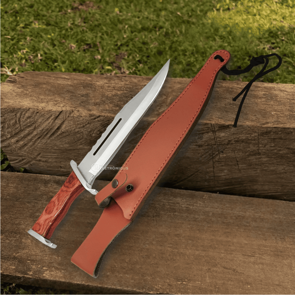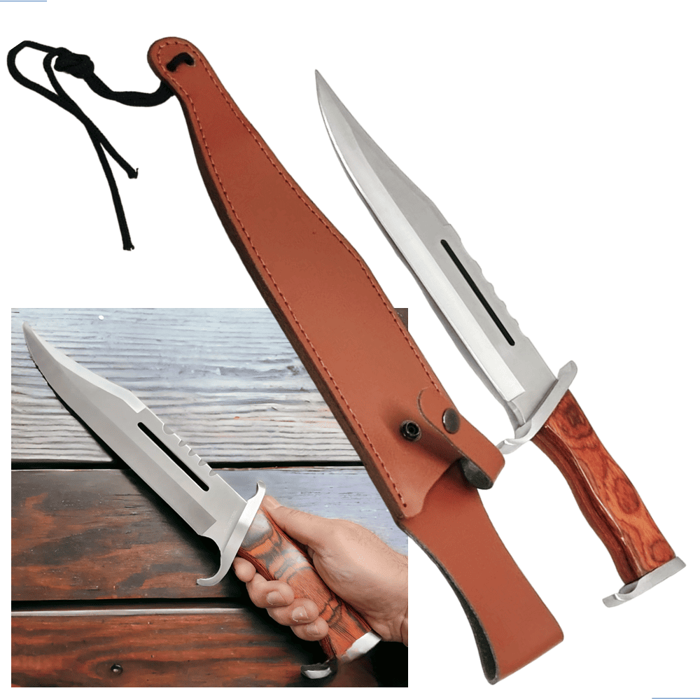 Faca de Caça 18″ Lâmina Full Tang de Sobrevivência Cabo em Madeira Com Lindo Acabamento