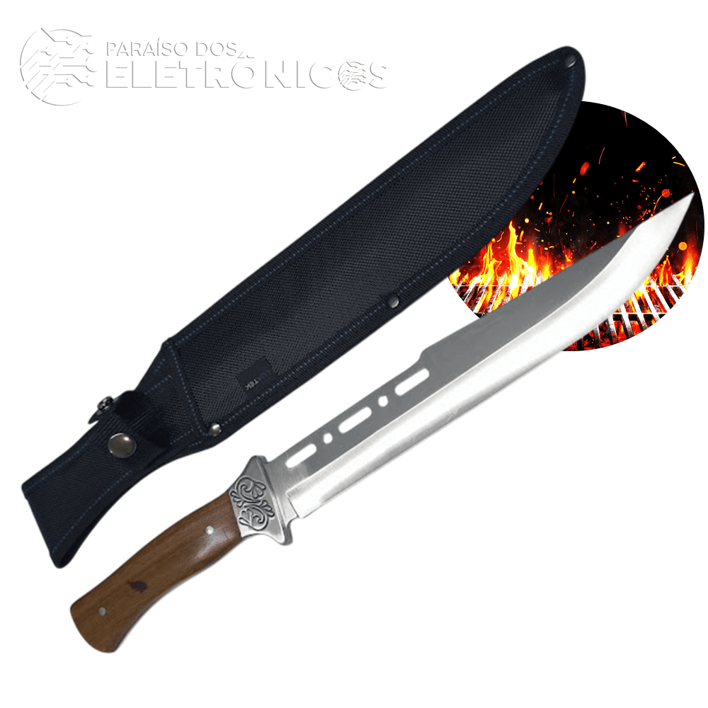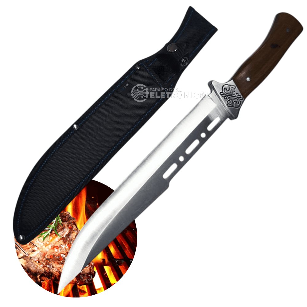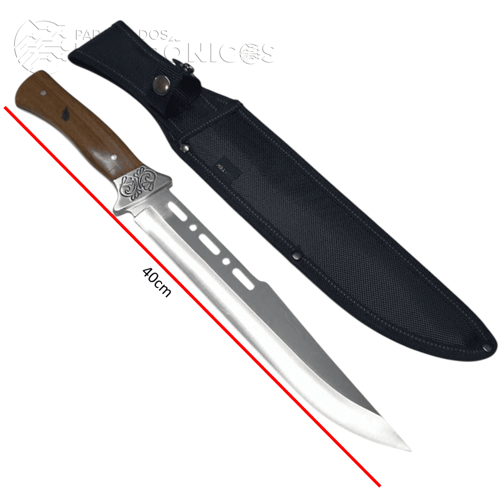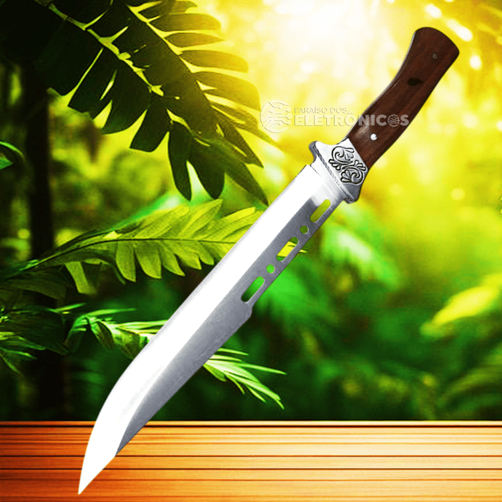A Faca 40cm é a escolha ideal para quem busca potência, precisão e durabilidade em um único equipamento. Com design robusto e imponente, oferece alto desempenho em atividades ao ar livre, como acampamentos, trilhas, pescarias, uso tático e até no preparo de churrascos.