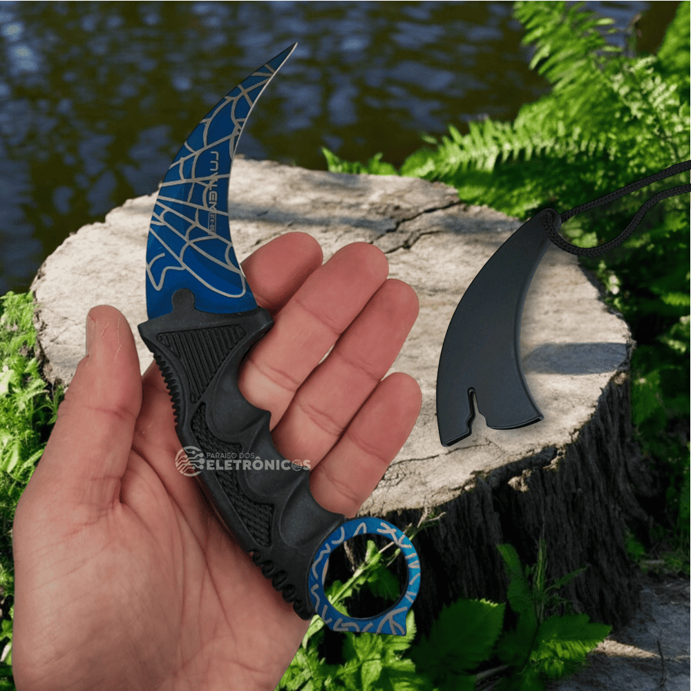 Faca Karambit Afiada Para Combate e Defesa Lâmina Curvada e Com Empunhadura Ergonômica - Azul SLKD87