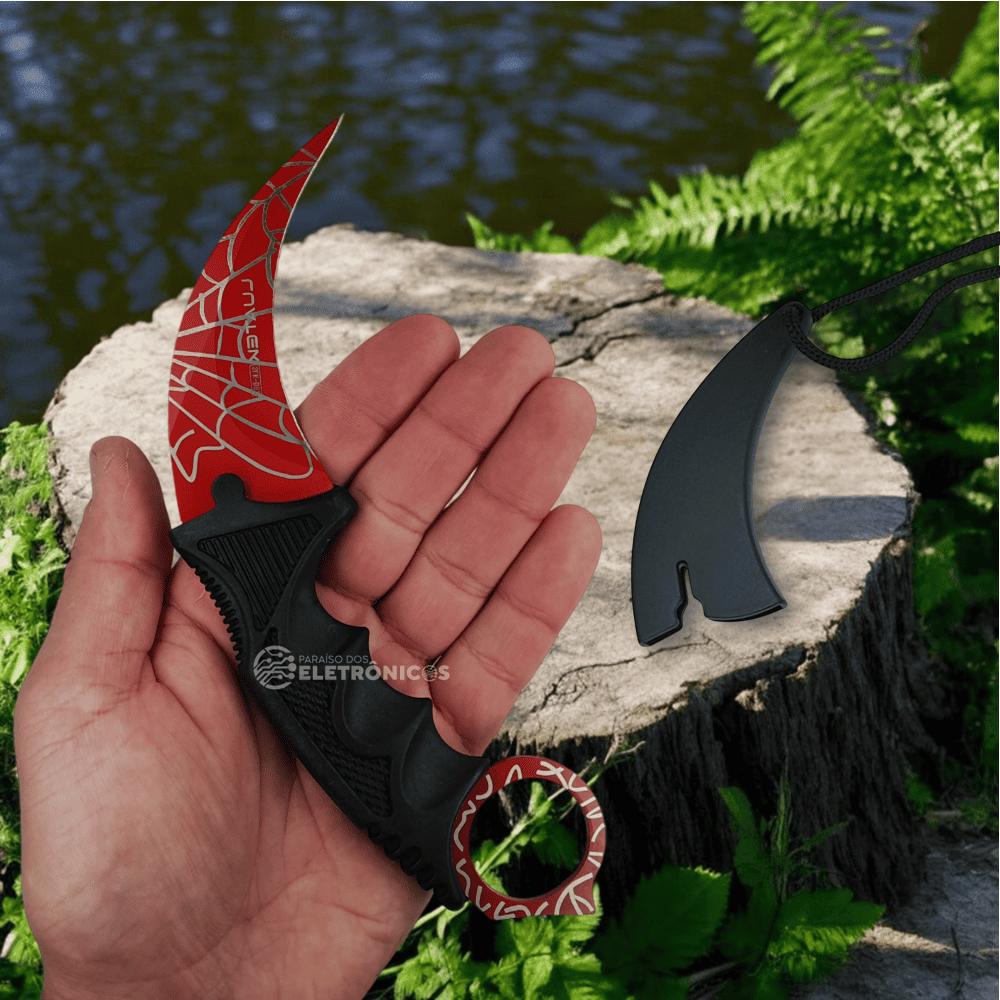 Faca Karambit Afiada Para Combate e Defesa Lâmina Curvada e Com Empunhadura Ergonômica – Vermelho SLKD87