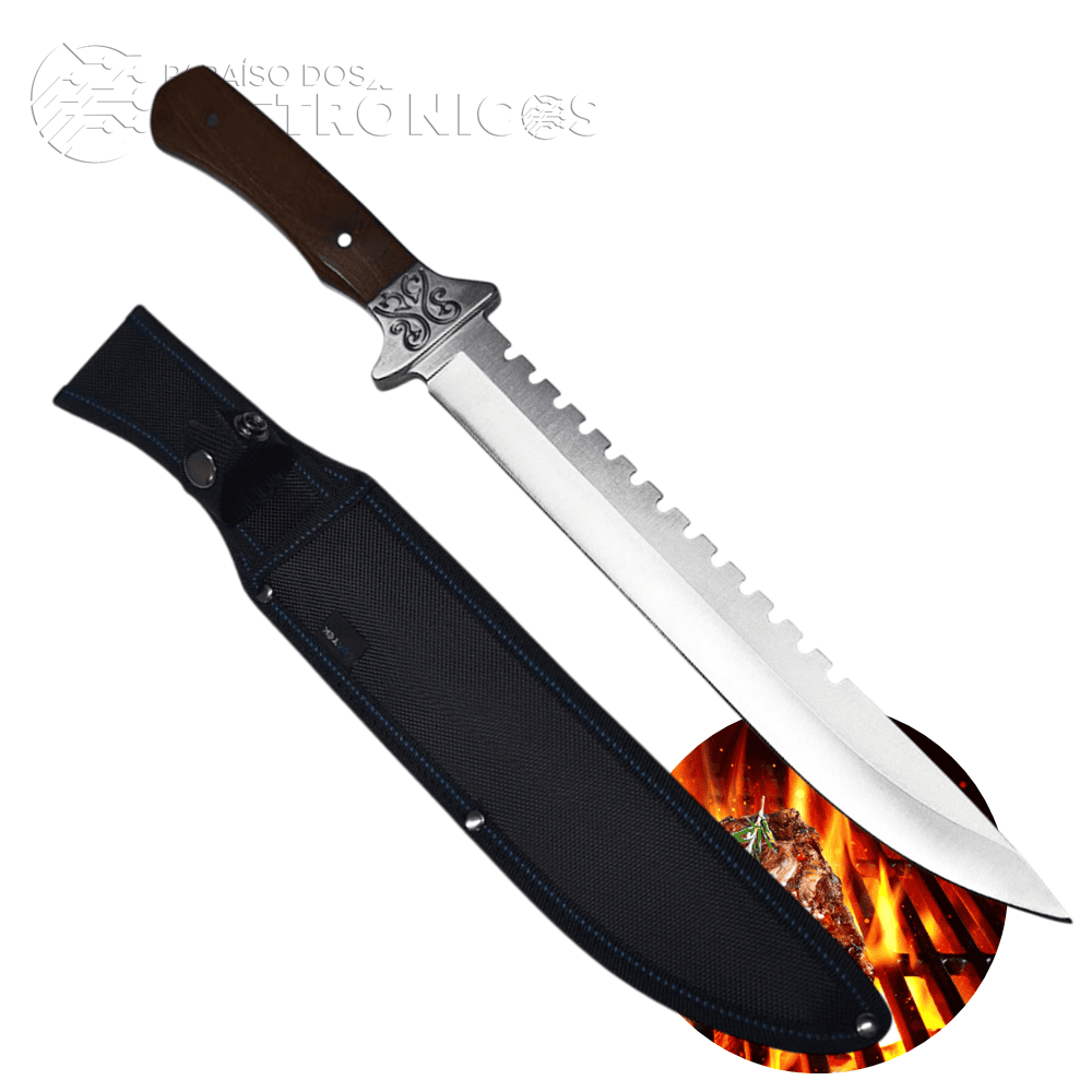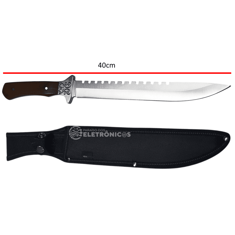 A Faca Tática 40cm é a escolha ideal para quem busca potência, precisão e durabilidade em um único equipamento. Com design robusto e imponente, oferece alto desempenho em atividades ao ar livre, como acampamentos, trilhas, pescarias, uso tático e até no preparo de churrascos.