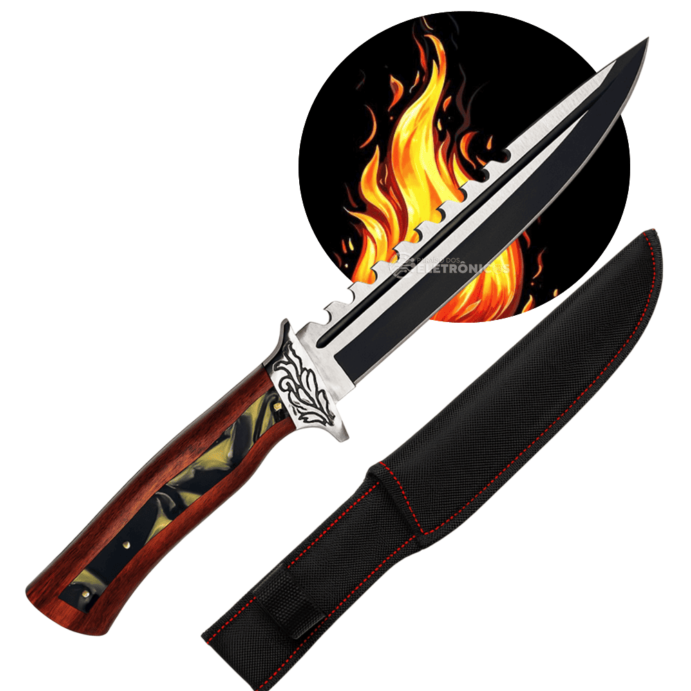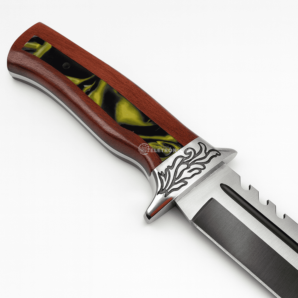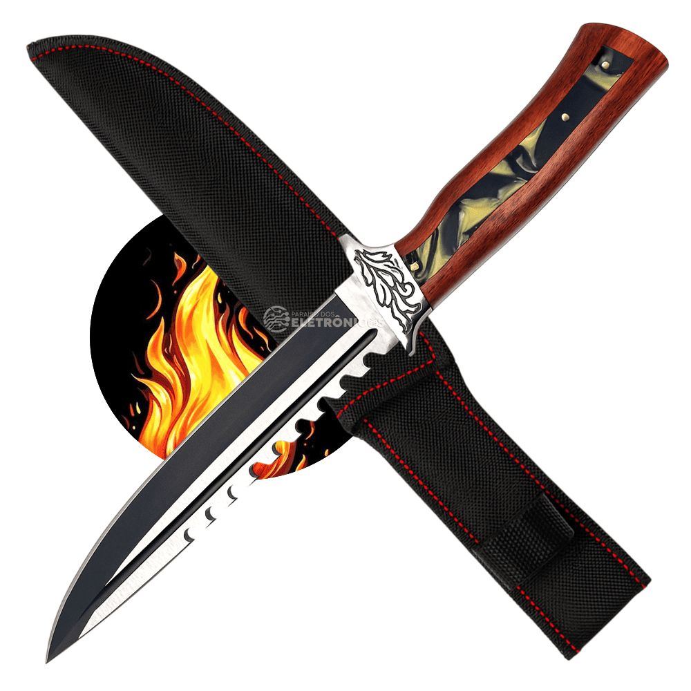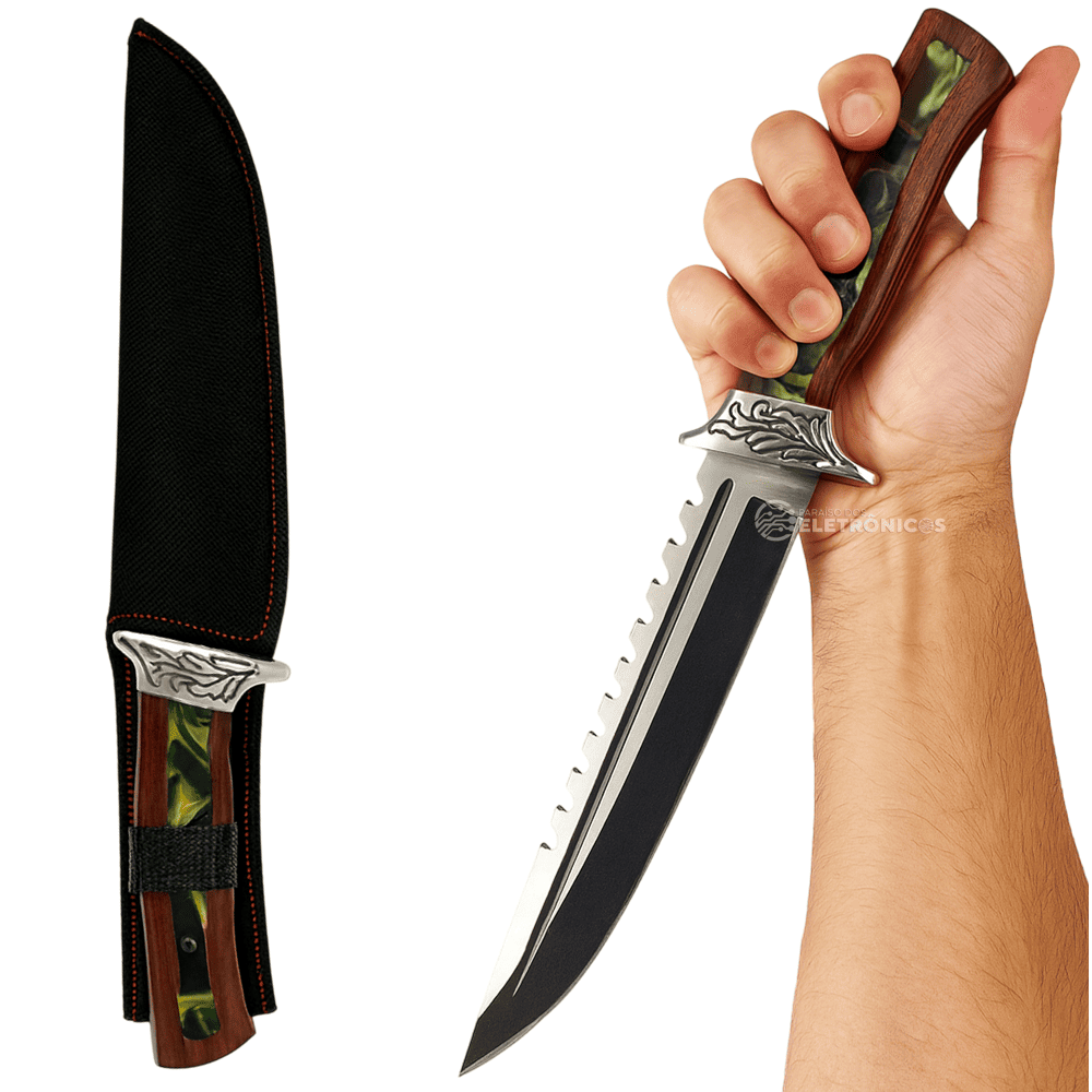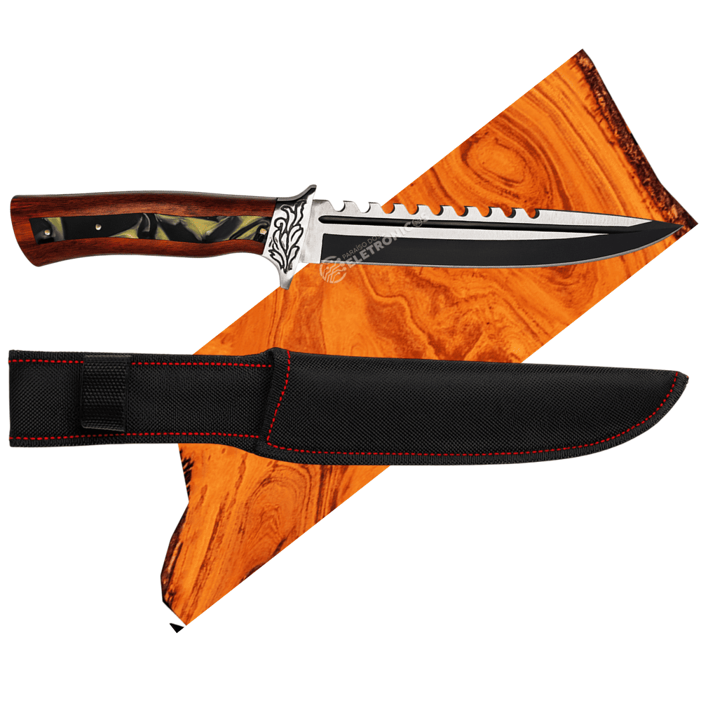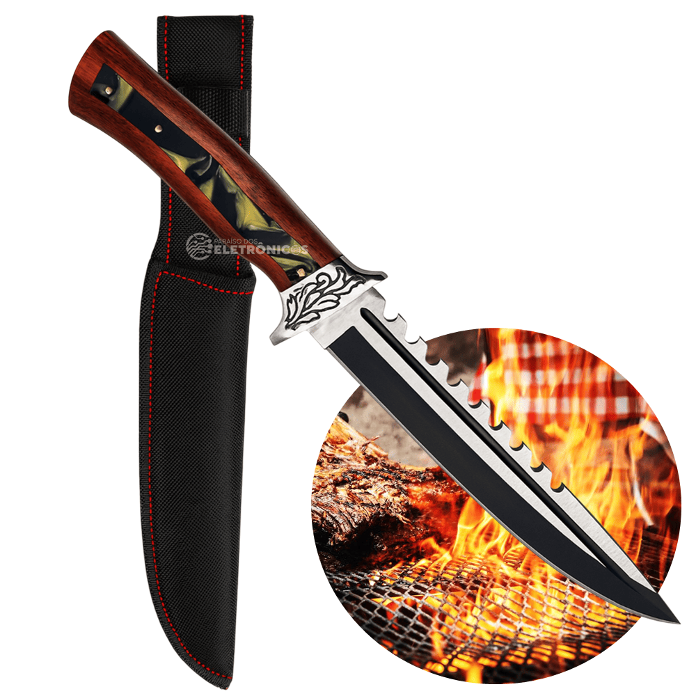 A Faca Modelo TB-09-1636 é perfeita para quem busca potência, estilo e multifuncionalidade em um único utensílio. Sua lâmina de aço inoxidável com 22 cm de comprimento e 4 mm de espessura garante cortes firmes e precisos, além de trazer um design diferenciado com acabamento escurecido e serrilha superior, tornando-a ideal tanto para churrascos quanto para atividades ao ar livre.