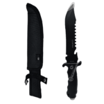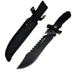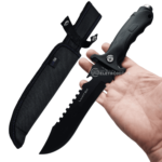 Faca com lâmina super amolada e resistente, pintura que protege a lâmina contra os intemperes da natureza evitando a ferrugem, o cabo é anatômico e permite excelente empunhadura. Design bem elaborado, possui cabo emborrachado de alta qualidade, fazendo com que a faca não deslize da sua mão durante o uso lhe dando total conforto e segurança para a utilização. Produzido em material de alta qualidade, a faca é ideal para lhe acompanhar em camping, pescas, trilhas e atividades na natureza. Acompanha bainha super resistente.