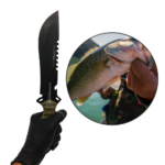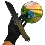 Além disso, nossa exclusiva bainha em polímero oferece praticidade no transporte e armazenamento, enquanto a inclusão de uma pederneira, um apito e um amolador tornam este produto uma ferramenta versátil e indispensável em situações de emergência.