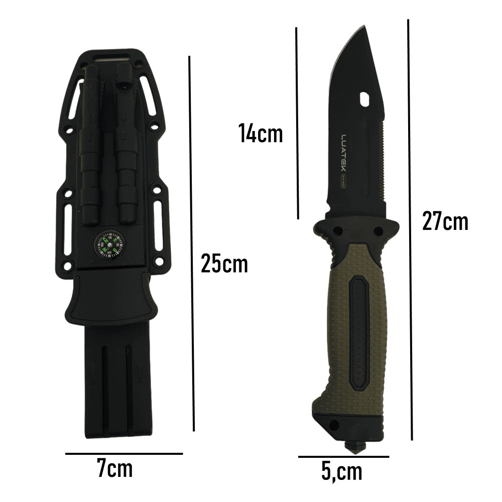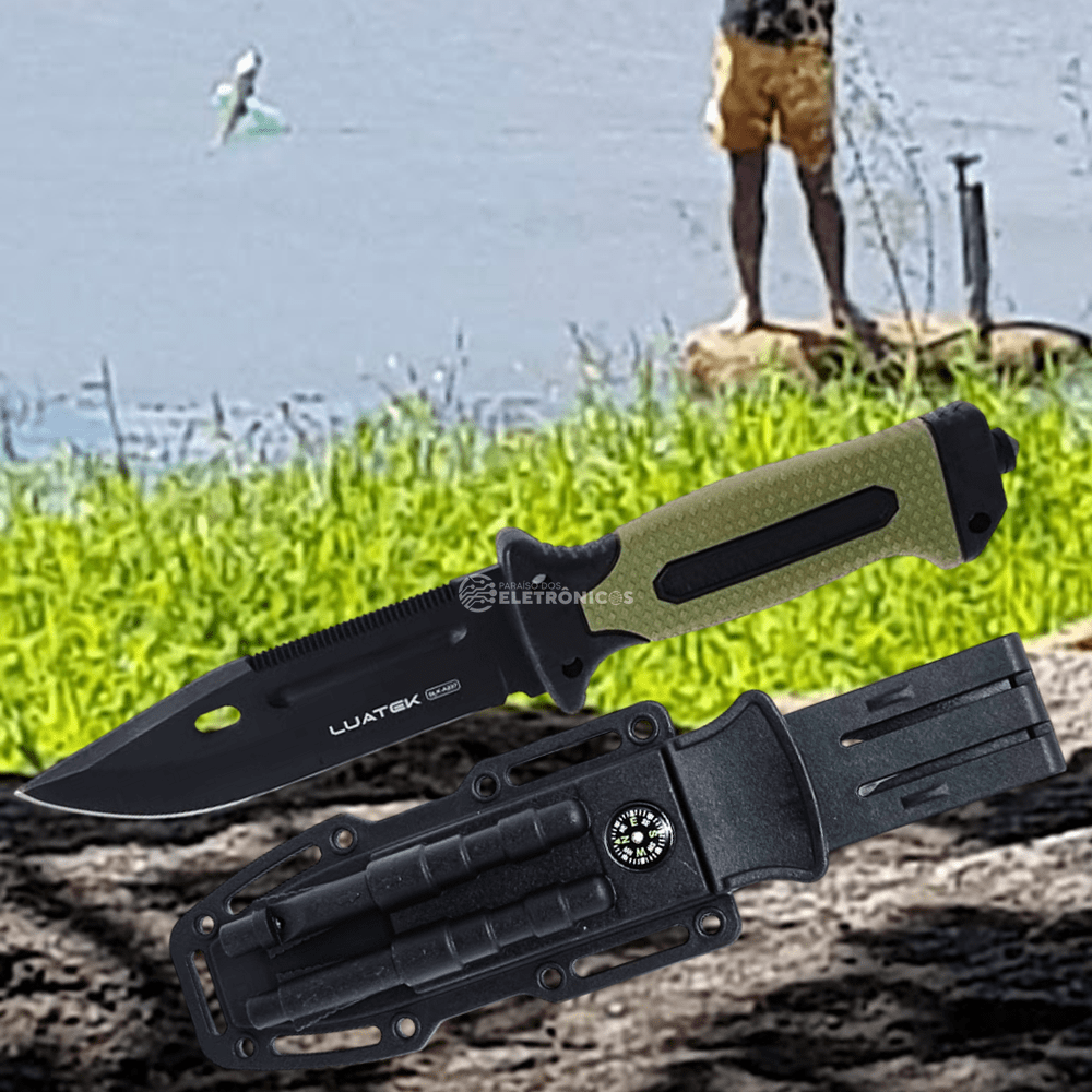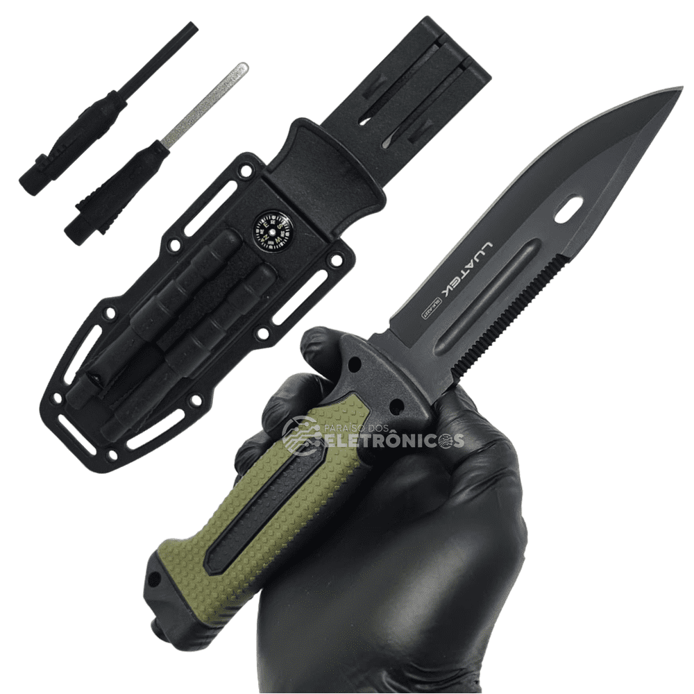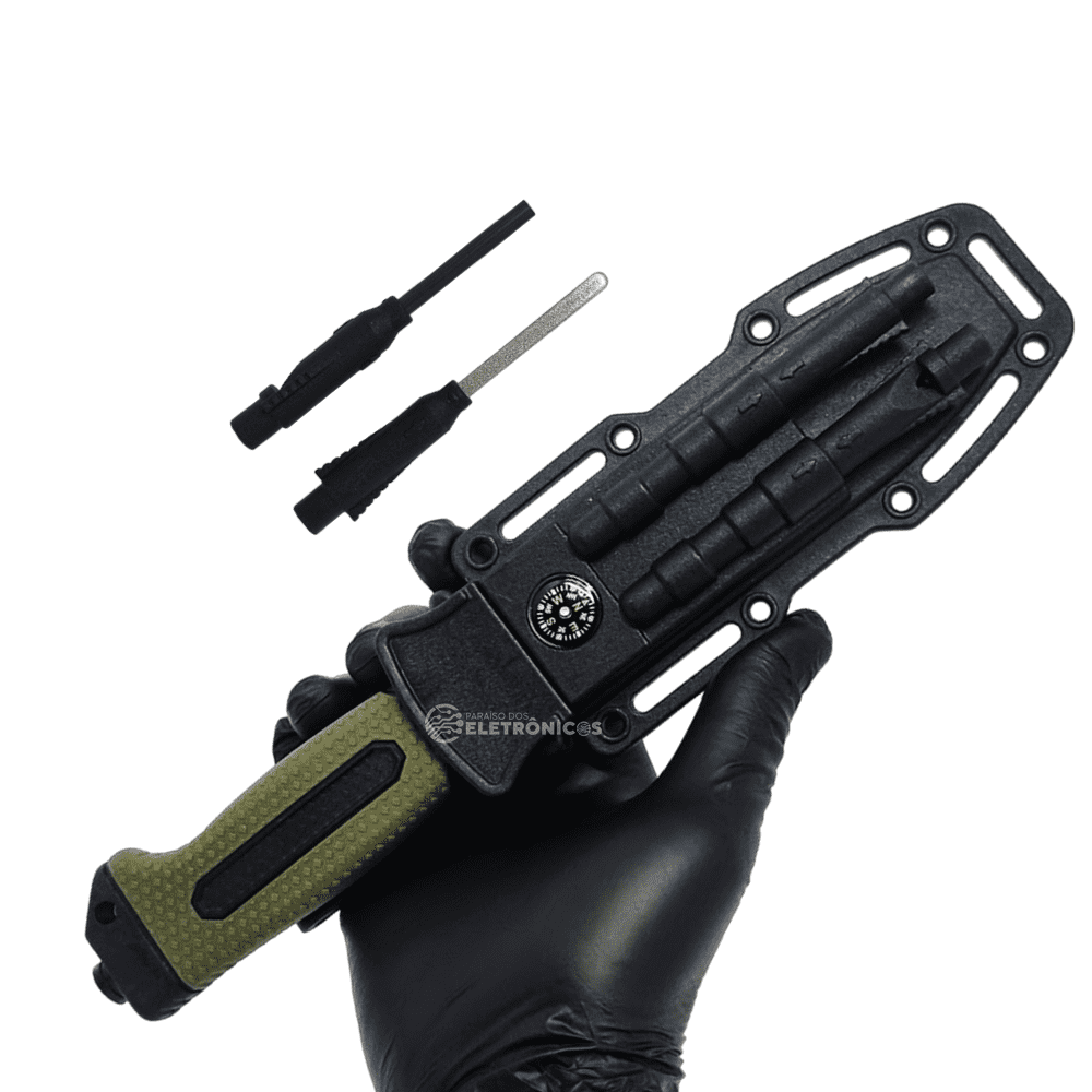 Faca Tática Militar Multiuso Com Bainha Equipada Com Bussola, Amolador, Apito e Pederneira