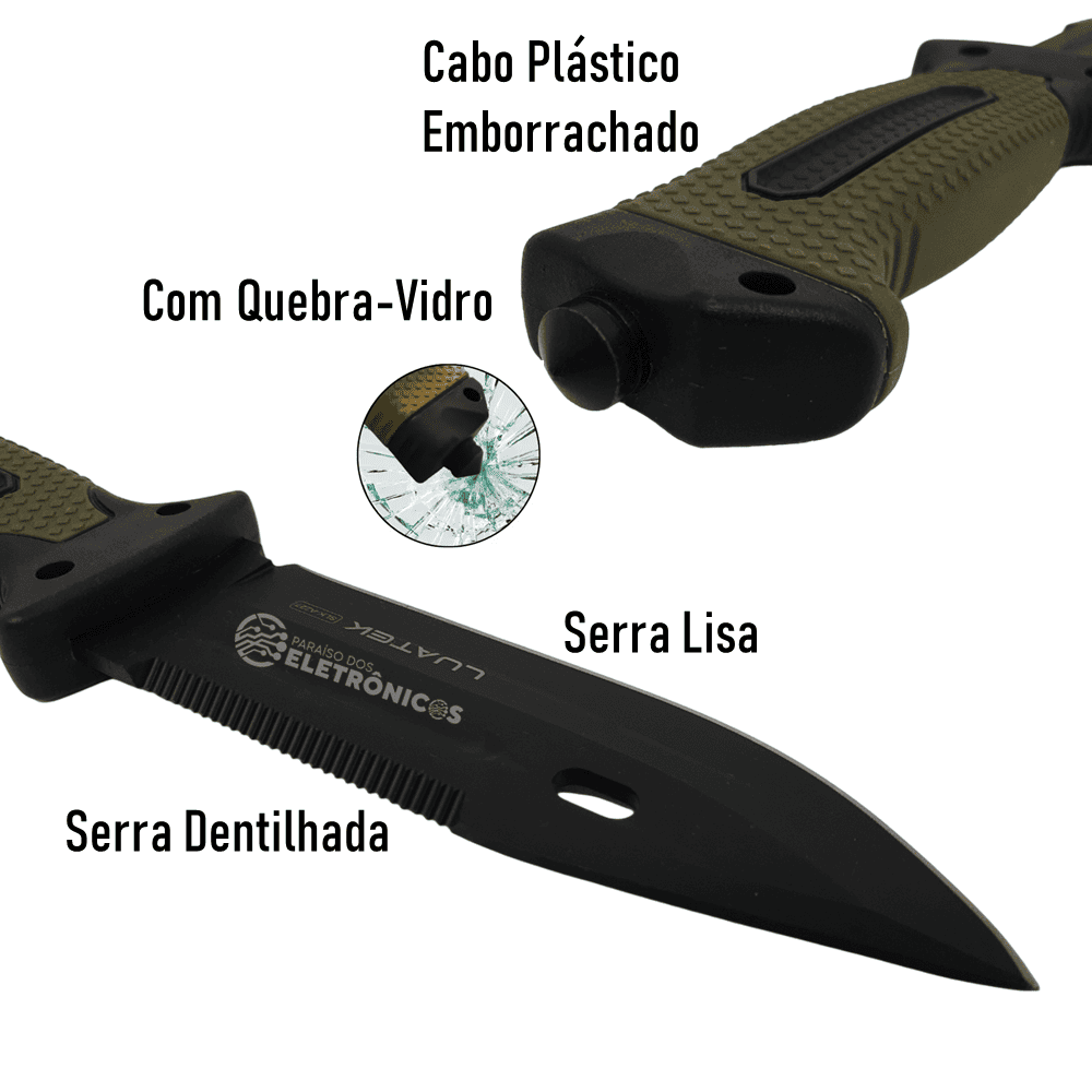 Equipado com uma lâmina afiada em aço inoxidável no formato Drop, esta faca garante precisão e eficiência em cada corte. Nunca se preocupe com ferrugem, pois a lâmina é resistente à corrosão. Conta também com uma ponta quebra vidro, para emergências.