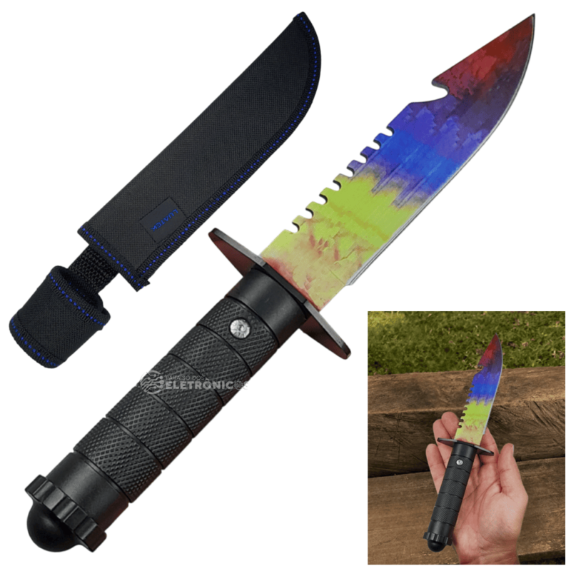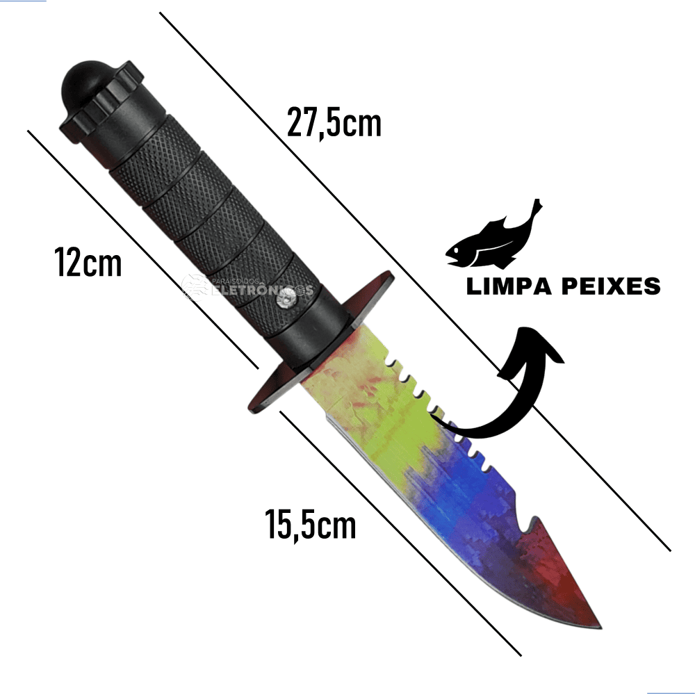 Ela também vem equipada com um abridor de garrafas integrado, adicionando ainda mais utilidade ao produto. Sua bainha de couro com suporte para cinto permite que a faca seja transportada com segurança e comodidade, ideal para aventuras ou tarefas cotidianas. Seja para camping, trilhas ou situações de emergência, essa faca oferece a combinação perfeita de funcionalidade e durabilidade.