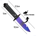 Ela também vem equipada com um abridor de garrafas integrado, adicionando ainda mais utilidade ao produto. Sua bainha de couro com suporte para cinto permite que a faca seja transportada com segurança e comodidade, ideal para aventuras ou tarefas cotidianas. Seja para camping, trilhas ou situações de emergência, essa faca oferece a combinação perfeita de funcionalidade e durabilidade.
