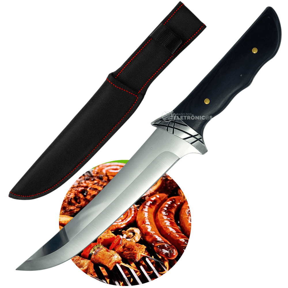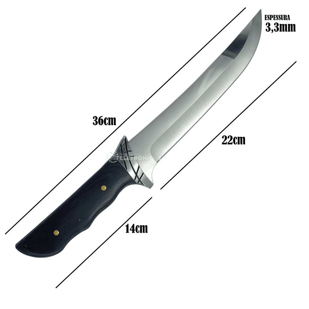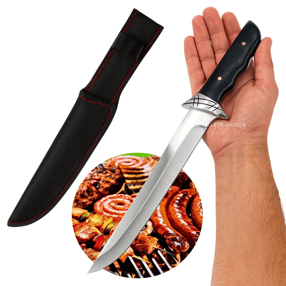 A Faca Modelo TB-09-2042 é ideal para churrascos, aventuras ao ar livre e uso cotidiano na cozinha. Com uma lâmina de aço inoxidável de 22 cm, oferece cortes firmes, precisos e de longa durabilidade. Seu design imponente, aliado à espessura de 3,3 mm, garante robustez sem perder a eficiência, tornando-a uma ferramenta indispensável para quem busca praticidade e resistência.