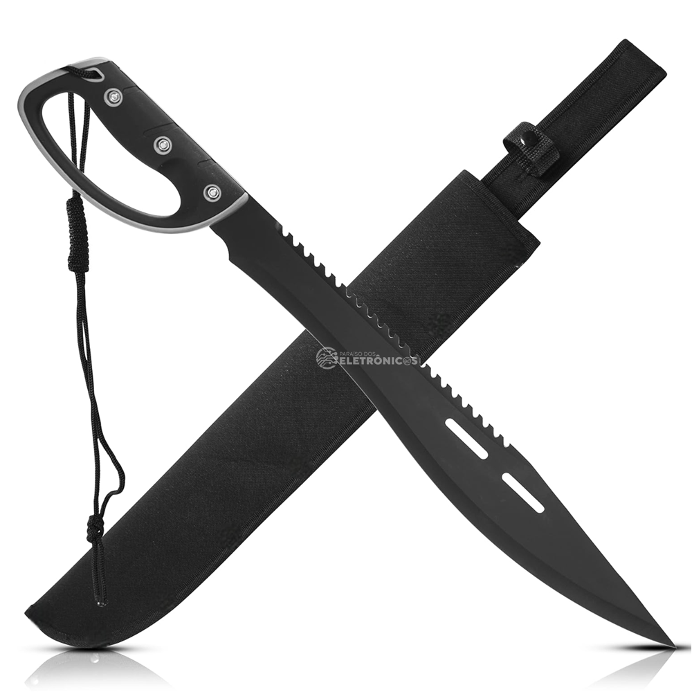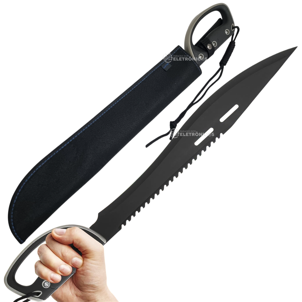O facão modelo SLK-K62 é uma ferramenta versátil e robusta, ideal para quem busca desempenho e durabilidade. Fabricado com lâmina de aço inoxidável de alta qualidade, possui espessura de 3,4 mm e um design que combina parte lisa e serrilhada, garantindo cortes precisos e função serrote para aplicações diversas. Com 61 cm de comprimento total, sendo 45 cm de lâmina e 16 cm de cabo, o produto oferece um excelente equilíbrio entre eficiência e conforto no manuseio. O cabo revestido em plástico e material emborrachado proporciona uma pegada firme e ergonômica, tornando o uso ainda mais seguro e prático.