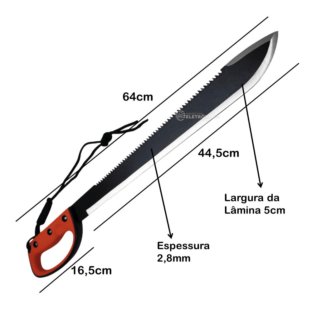 Facão 64cm Trabalho braçal com Serra, Cabo Emborrachado Fechado e Bainha – SLKK55