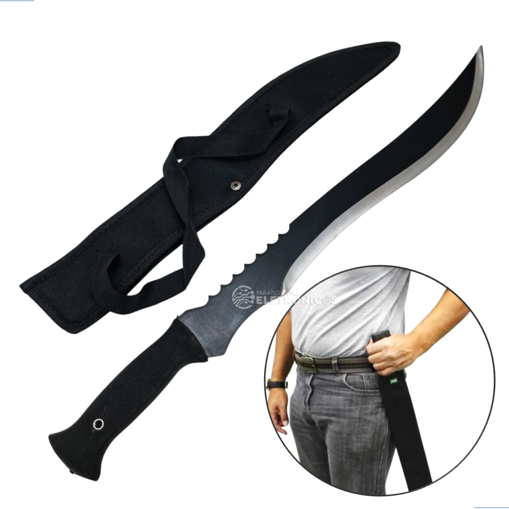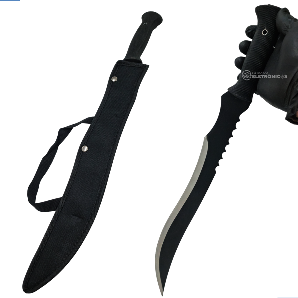 Facão Militar Tático Lâmina Curva Para Uso Geral Com Cabo Emborrachado