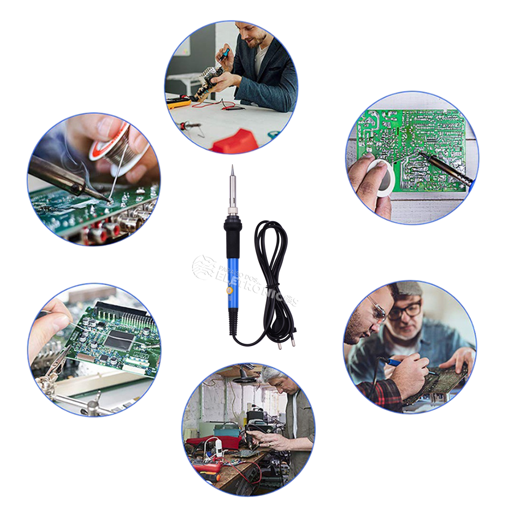 Certifique-se de que o ferro de solda seja mantido longe de materiais inflamáveis. Mantenha o ferro de solda limpo e em boas condições de funcionamento. Manter fora do alcance de crianças e animais. Sempre siga as instruções do fabricante, não faça modificações na resistência ou nos circuitos internos do produto.