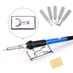 Acompanha também 6 Pontas de solda (1 no ferro e outras 5 em embalagem extra). Além disso o revestimento da cabeça de soldagem é feito de material antioxidante.