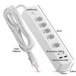 Este filtro de linha é a solução ideal para quem busca mais tomadas e conveniência ao carregar dispositivos eletrônicos. Com uma potência máxima de 2500W e corrente máxima de 2.4A, esta extensão suporta uma grande variedade de aparelhos conectados simultaneamente.