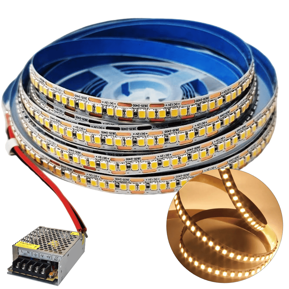 Fita LED 3528 3500K Para Perfil de Decoração Branco Quente 240 LEDs/m IP20 + Fonte