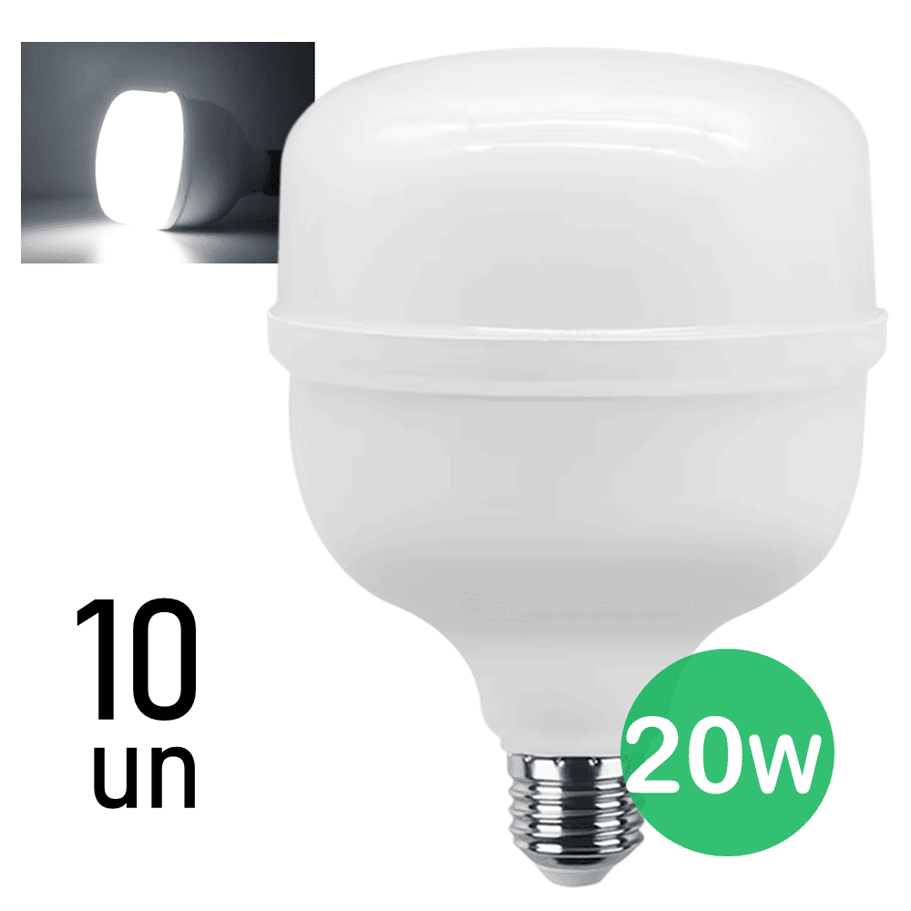 Kit 10 Lâmpadas LED Bulbo Alta Potência 20W 1600 Lumens 6500K Branco-Frio E27 – EB7000