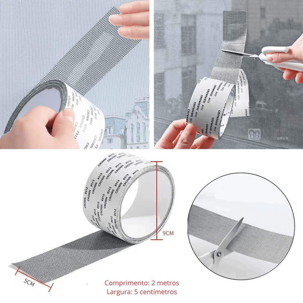 Fácil de aplicar, basta limpar a área danificada, cortar a fita no tamanho desejado e colar sobre o furo ou rasgo. Ideal para prolongar a vida útil de sua tela mosqueteira, evitando a entrada de mosquitos e outros insetos de forma eficiente e econômica.