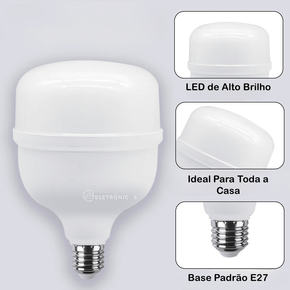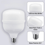 A Lâmpada de LED Bulbo de 30w é uma excelente opção para usar em Plafons de Embutir e Sobrepor ou em qualquer luminária que tenham o Soquete E27 com pouco espaço interno, além de um excelente fluxo luminoso. Funciona em 110v ou 220v. Possui temperatura de cor de 6500K (branco frio).