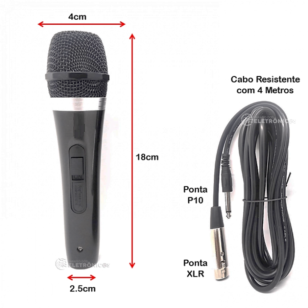 Microfone Com Fio Duplo Unidirecional Profissional Dinâmico