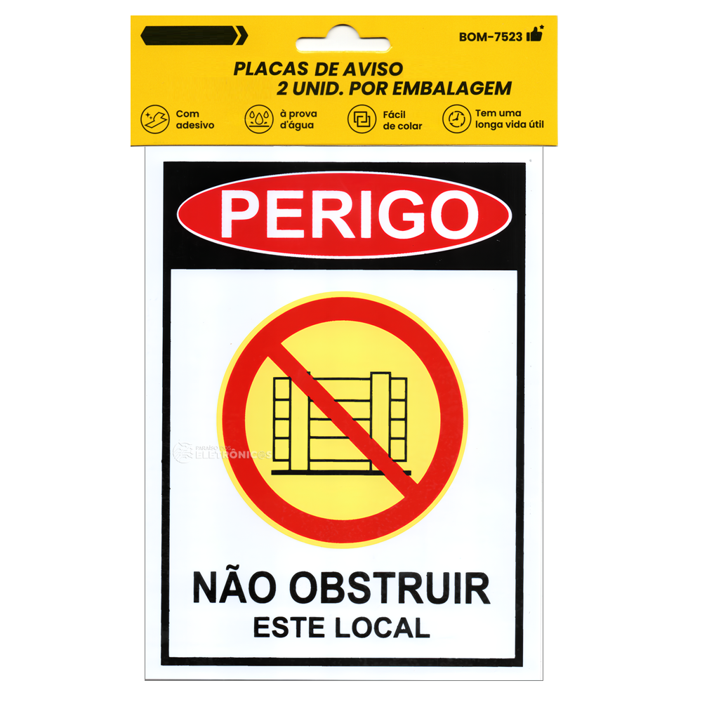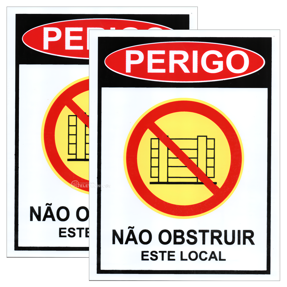 Kit 2 Placas Aviso de Perigo “Não Obstruir Este Local” 20cm x 15cm – BOM7523
