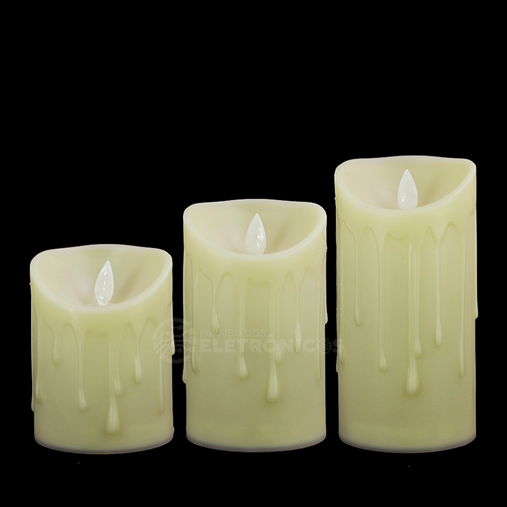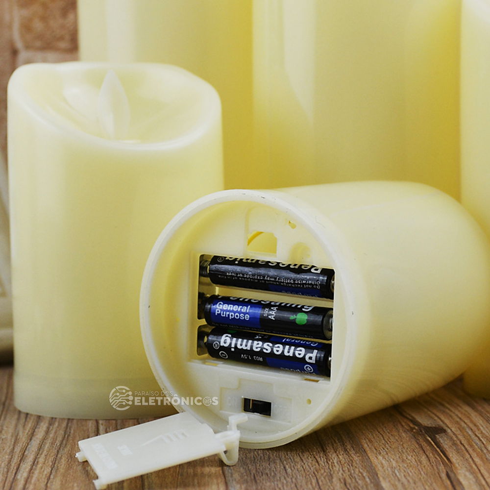 Funcionamento à base de três Pilhas AAA (não inclusas). O consumo da vela é baixo, com isso, as pilhas duram bastante. Com o final do consumo de energia, basta trocar as pilhas.