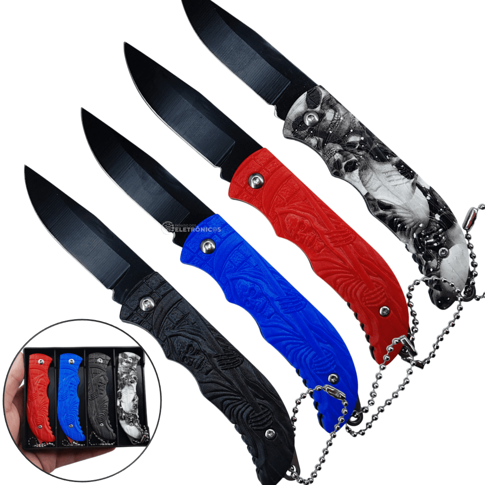 1 Estojo Com 4 Canivetes de Aço Resistente Com Abertura Manual Coloridos – SLKD54