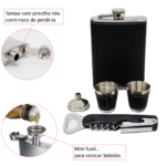 Estojo: Cantil, um abridor, um mini funil, um copo shot
