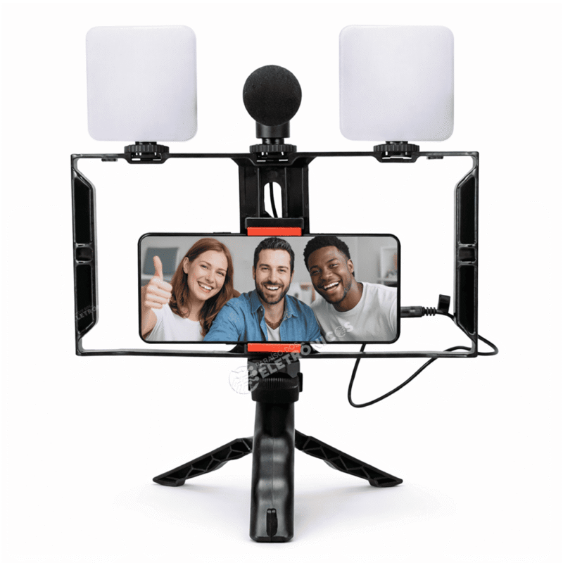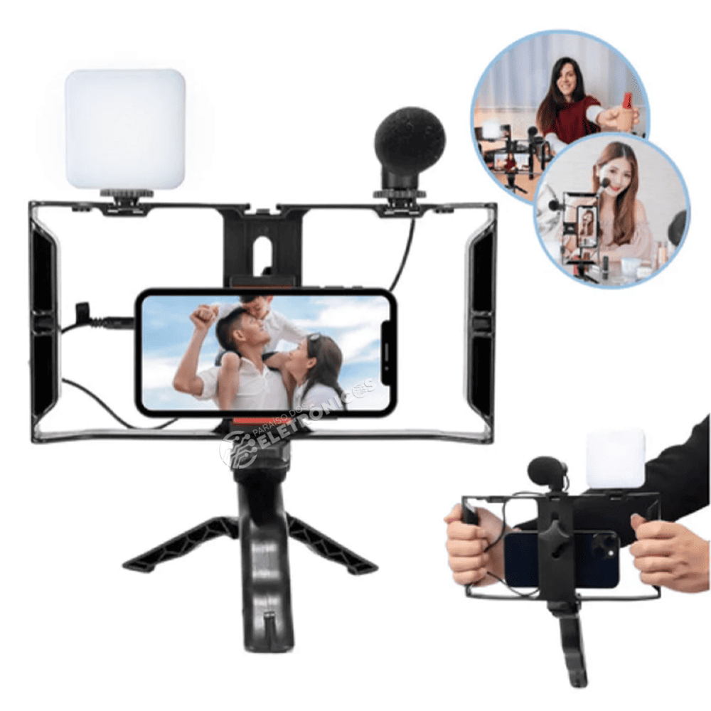 Transforme seu celular em um verdadeiro estúdio portátil com este completo kit de gravação para smartphone. Ideal para criadores de conteúdo, vloggers, influencers, lives, entrevistas e gravações profissionais, o conjunto oferece estabilidade, iluminação e captação de áudio de qualidade em um único equipamento. Com design ergonômico e estrutura resistente, ele proporciona mais conforto e praticidade durante o uso.