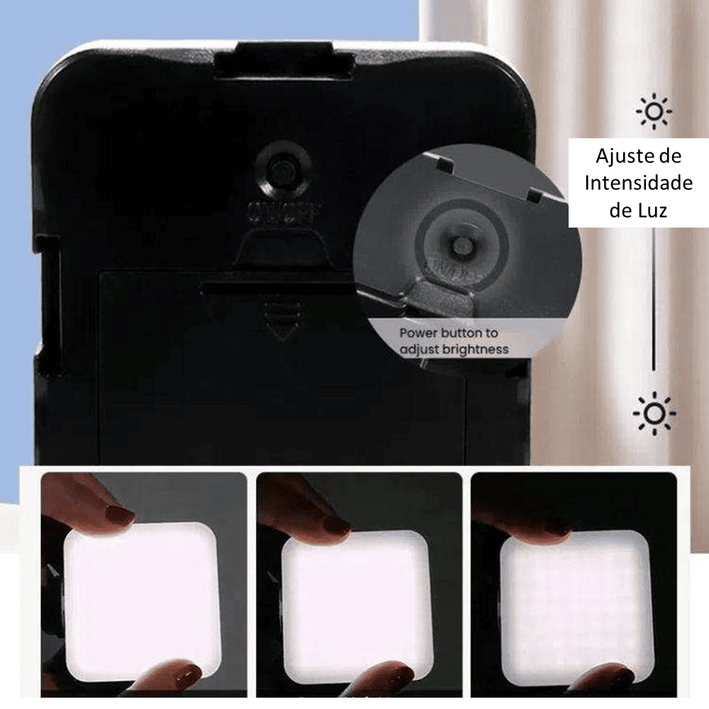 O kit acompanha duas luzes LED ajustáveis que ajudam a melhorar a iluminação das cenas, deixando seus vídeos mais profissionais mesmo em ambientes com pouca luz. Com diferentes níveis de intensidade, você pode ajustar facilmente o brilho para obter a melhor qualidade de imagem em fotos, vídeos, lives ou gravações para redes sociais.