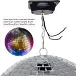 Motor para globo de espelho com função de fazer o globo ficar no movimento de rotação aumentando o seu efeito e proporcionando que sua pista de dança fique ainda mais bonita. Recomendado para globos de 10,15,20,25,30.35,40cm
