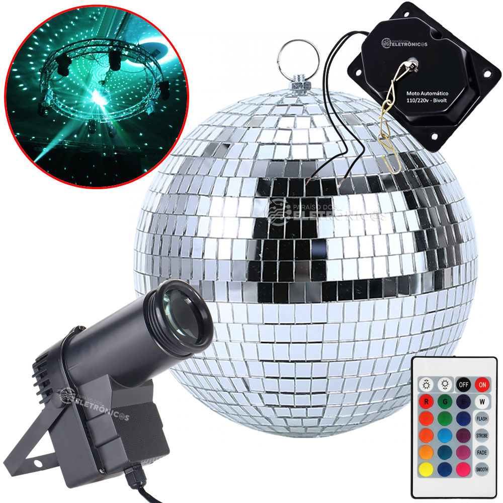 Kit Globo Espelhado 30cm Com Motor E Refletor De LED RGB 10W