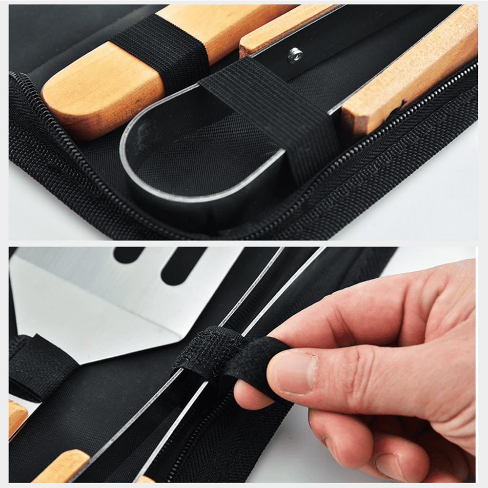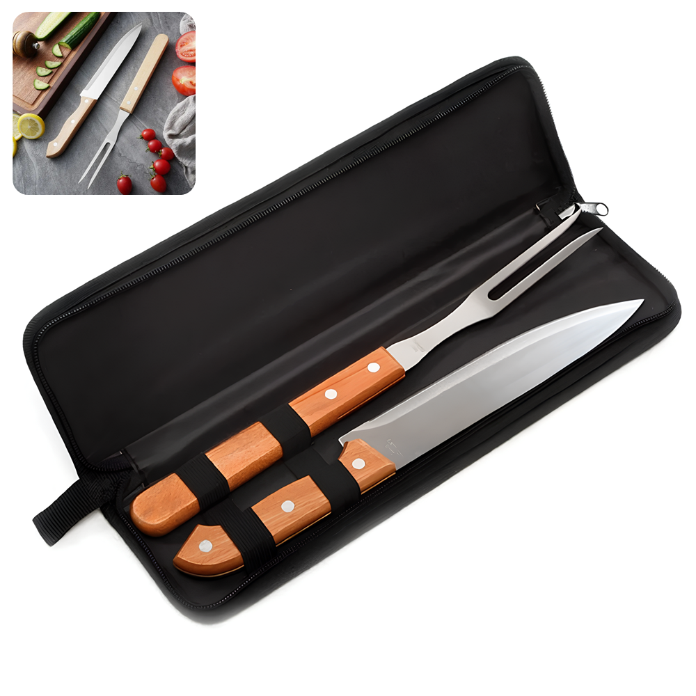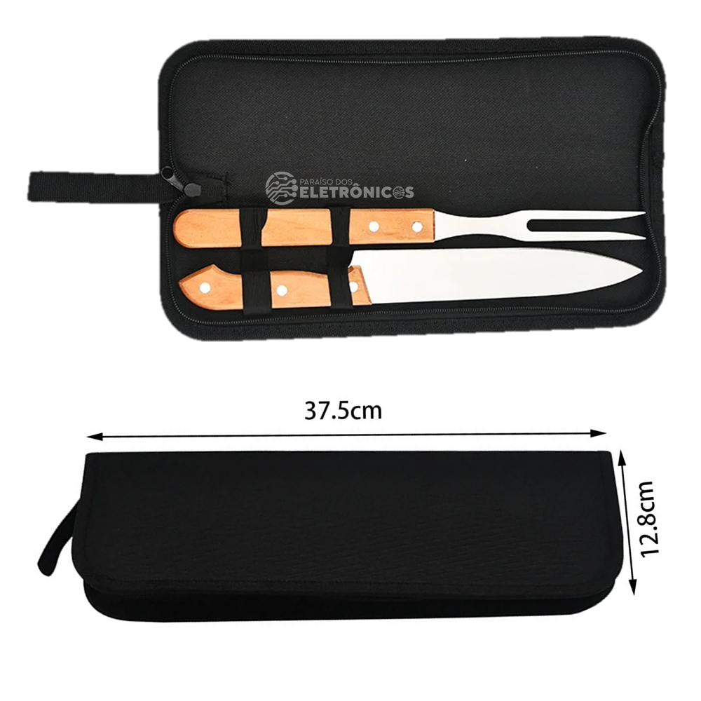Com o Kit Você terá todos os utensílios necessários para um churrasco impecável. O estojo de nylon com alça para pendurar torna o transporte e o armazenamento mais práticos, enquanto a faca afiada e o garfo robusto garantem um desempenho superior na preparação e no serviço.