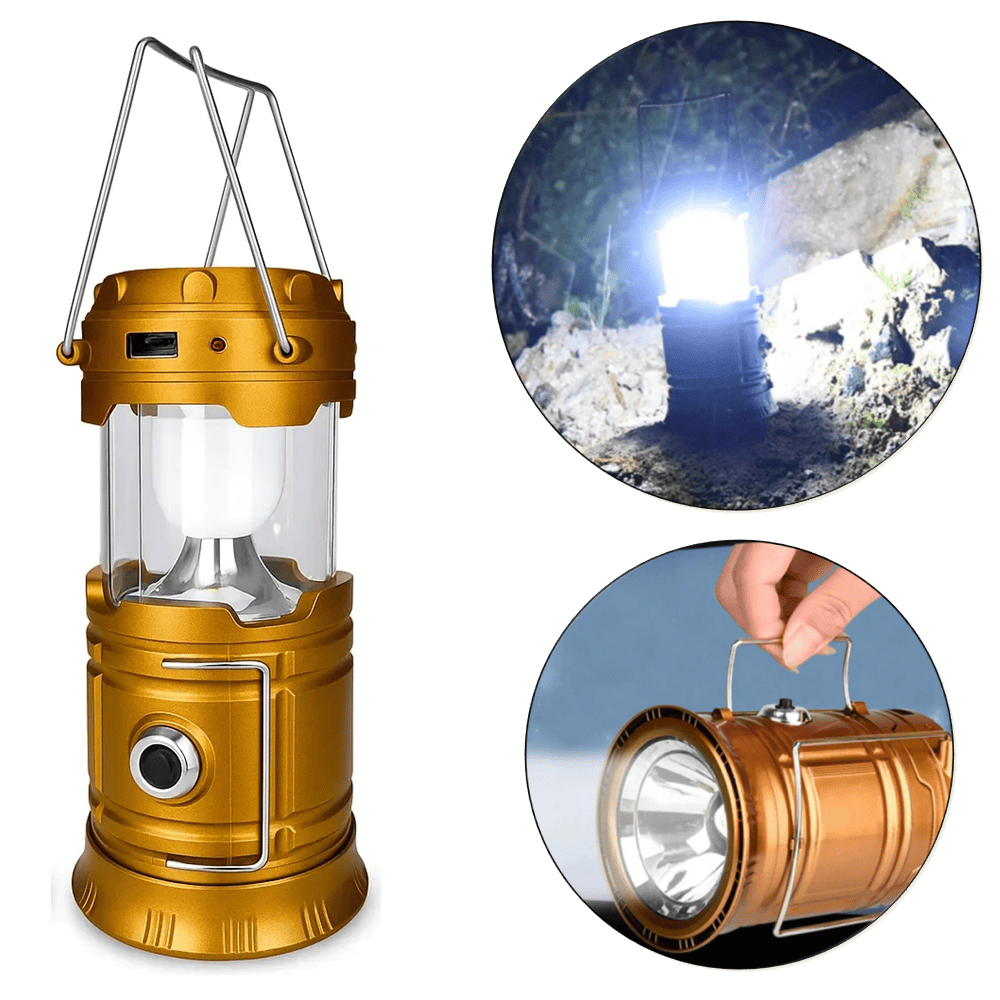 A Luminária Solar é multifuncional, possui uma lanterna e um lampião embutidos. Pode ser carregada via solar ou através da eletricidade (bivolt). Ideal para acampamentos, pescaria, emergências durante a noite, trabalhar no computador ou ler separadamente sem incomodar os outros.