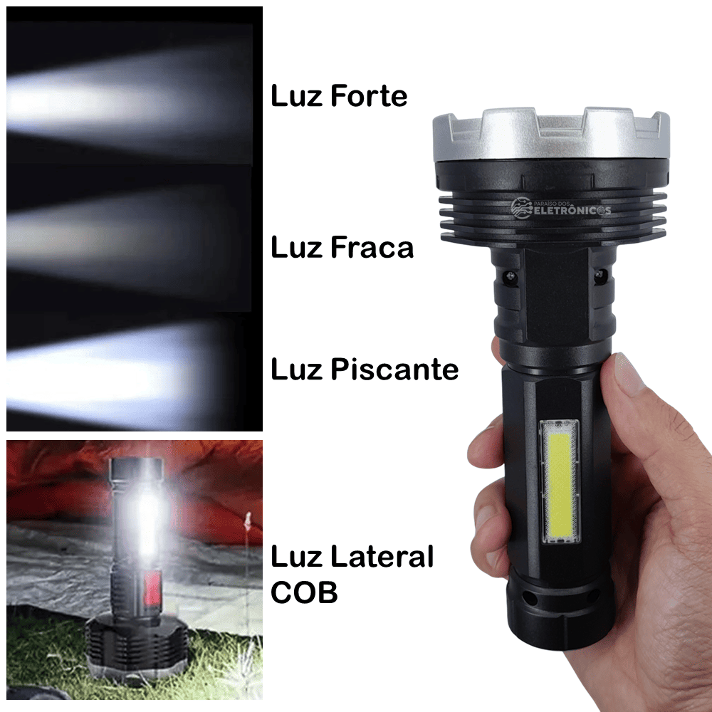 Modo de Iluminação: Luz Forte, Luz Fraca, Pisca Rápido, Luz Lateral