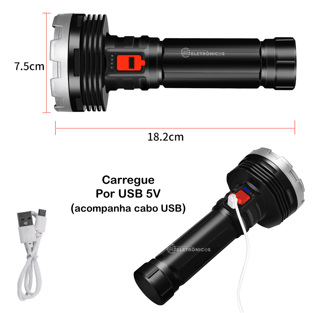 Fácil de usar pode ser recarregada em qualquer tomada USB (acompanha cabo USB). Conta com uma alça para auxilio durante o uso. Produto leve tecnologia LED Super economia. Além do beneficio de se mais leve fácil de pegar na mão.