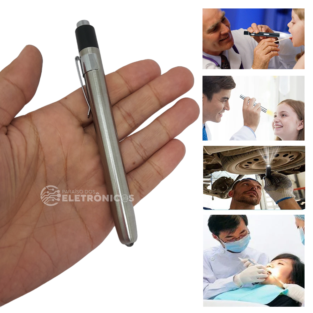 A Lanterna Penlight é utilizada por profissionais da área da saúde para avaliação de reflexos da pupila, exames clínicos, dentre outros, podendo ser utilizada em diversas especialidades, como oculistas, dentistas, petshops, etc