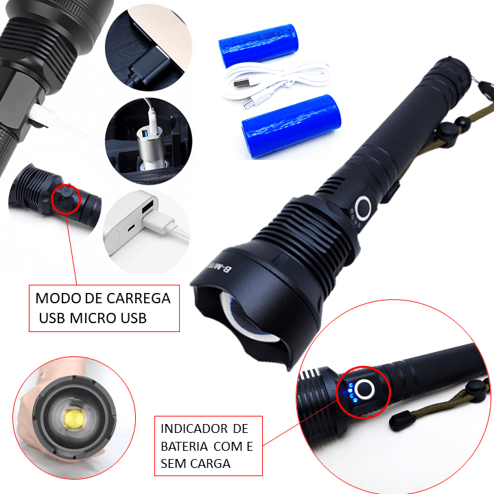 Lanterna Tática Holofote LED XH-P90 Super Forte Para Segurança E Emergência.