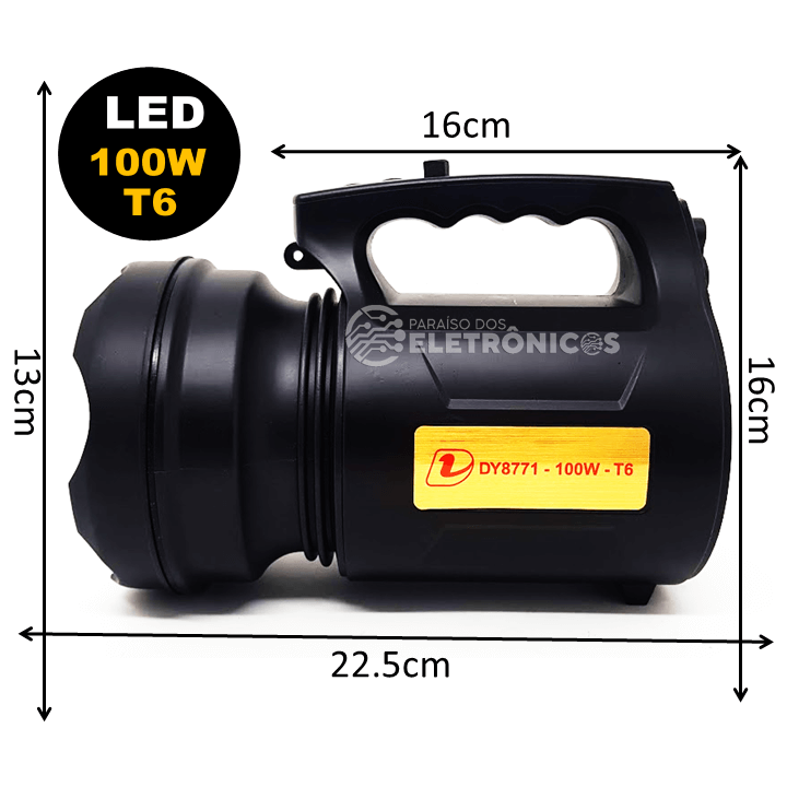 Lanterna Holofote Super Forte 100W Recarregável LED T6 Alta Potência DY8771