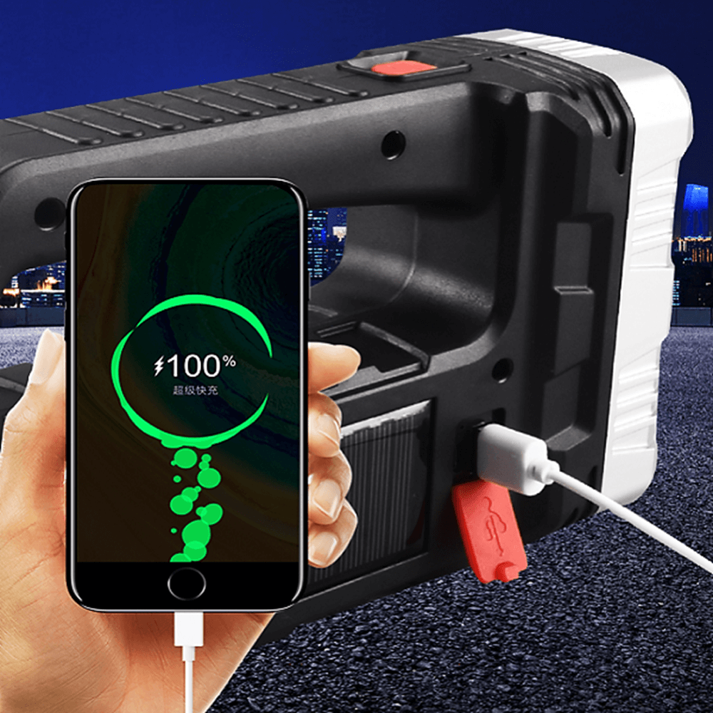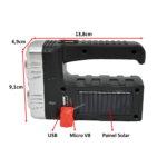 Lanterna Potente LED Recarregável USB E Solar Iluminação Lateral