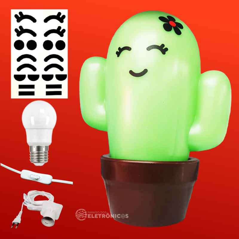1 Luminária Cactos Com Vaso Lâmpada Cor Branca 10010113