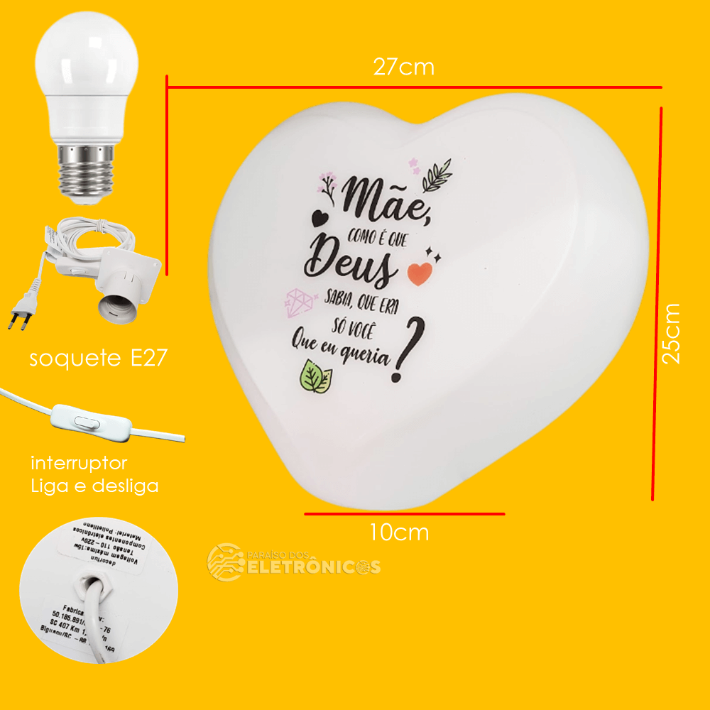 1 Luminária Coração De Mãe Deus Sabia Lâmpada LED Branco 10010888B