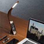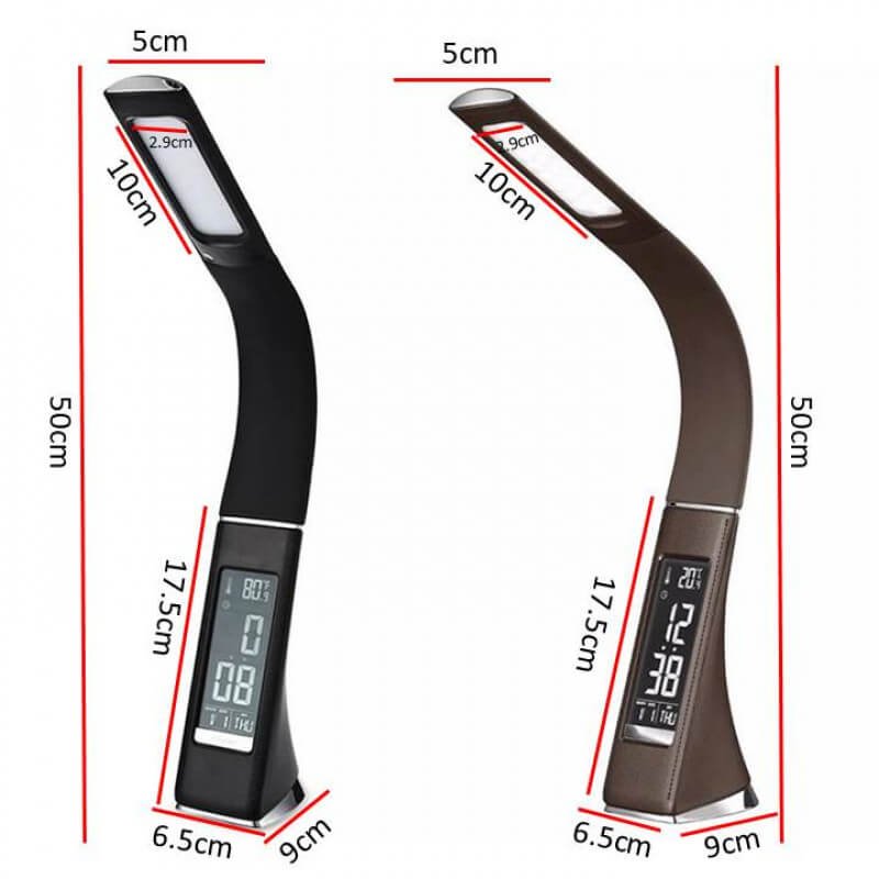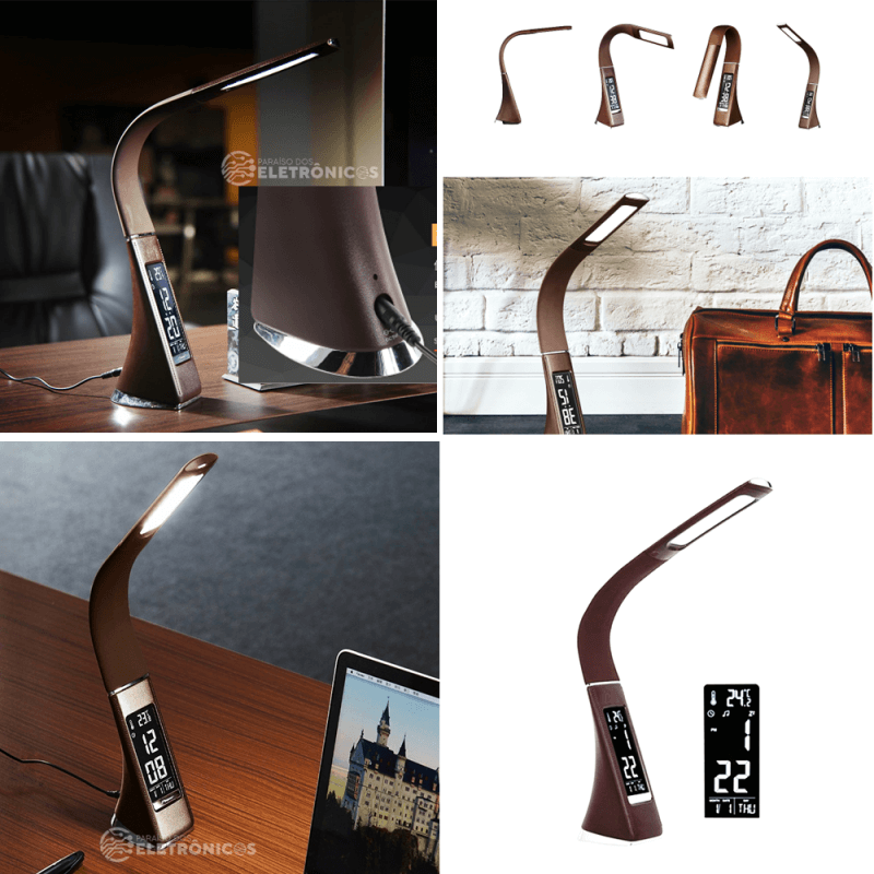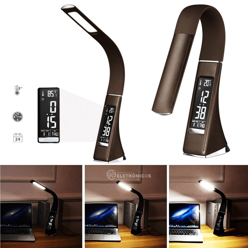 Luminária LED Para Mesa U2 Original Medidor De Termômetro Relógio Despertador Marrom TB0792