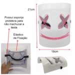Mascara possui cinta elástica confortável para prender na cabeça.
