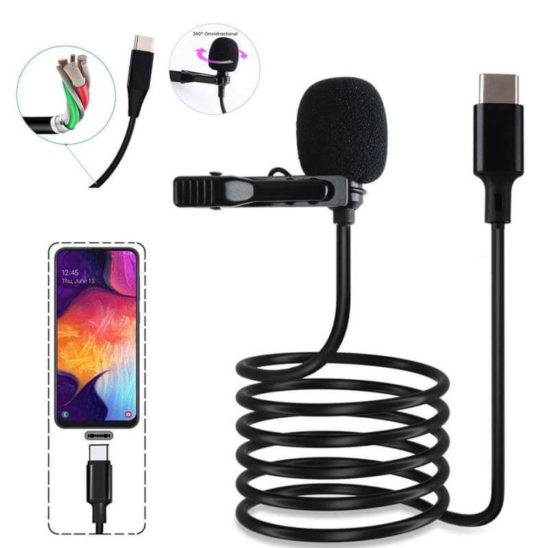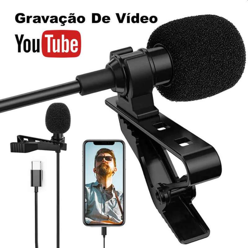 Microfone lapela Tipo-C Profissional Para celular Estúdio Gravações YouTube