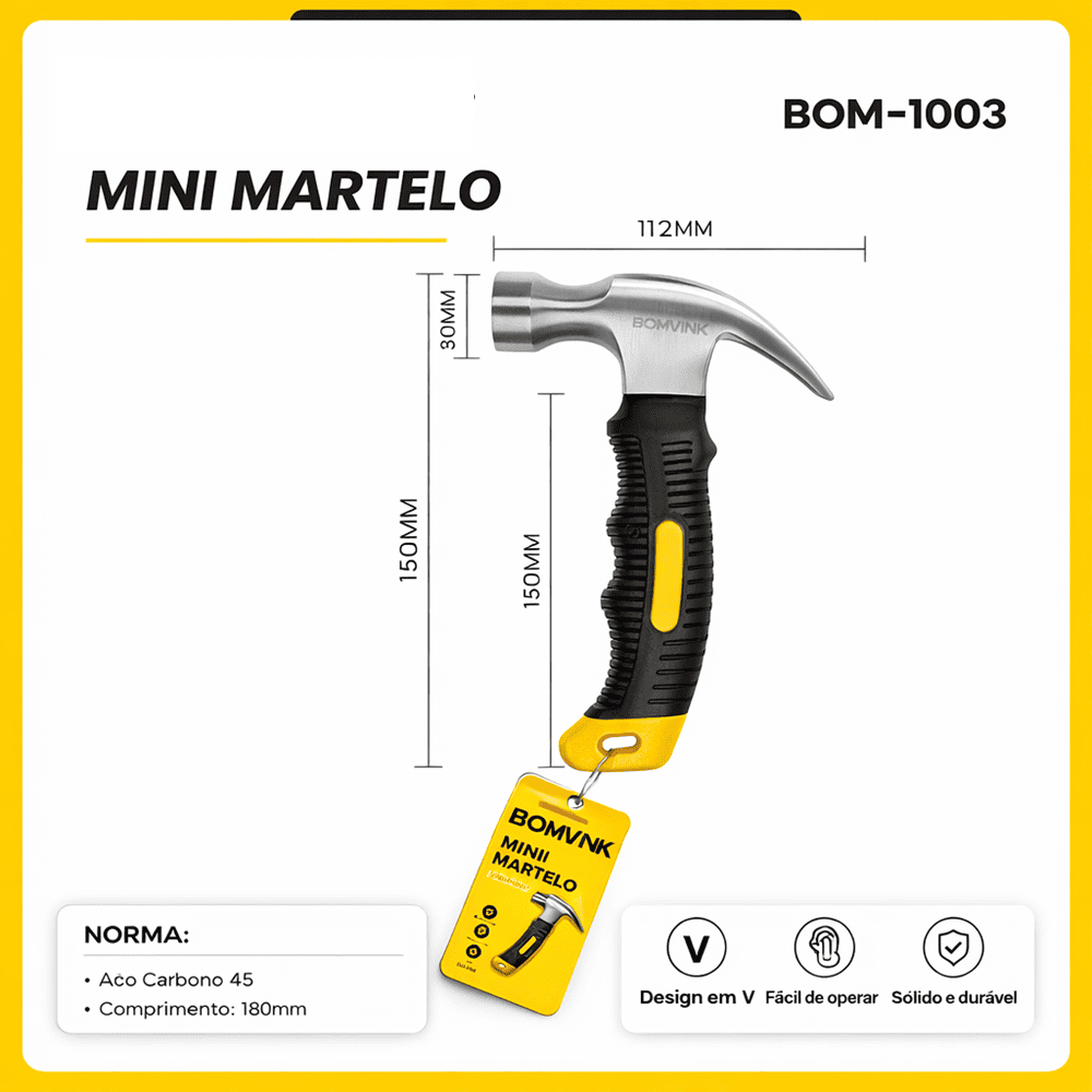 1 Mini Martelo Cabo Curto Emborrachado – BOM1003