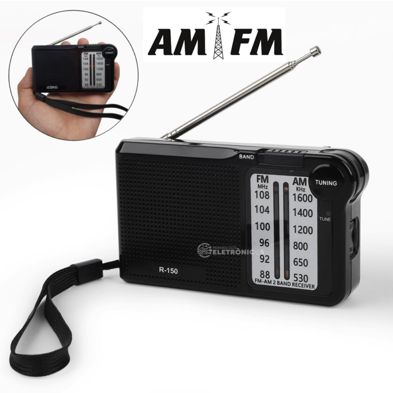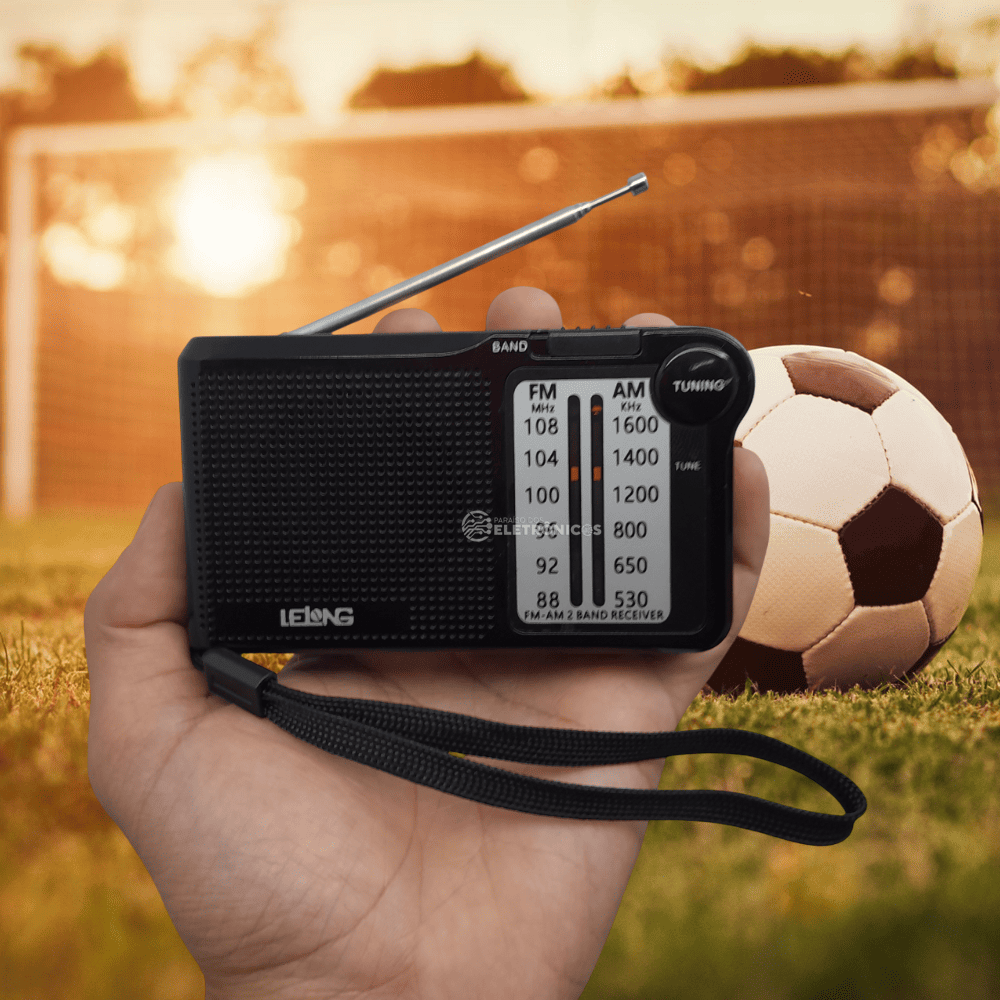 Rádio portátil analógico AM / FM tem uma ótima recepção de sinais. Não perca a transmissão das partidas do seu time seja onde você estiver.