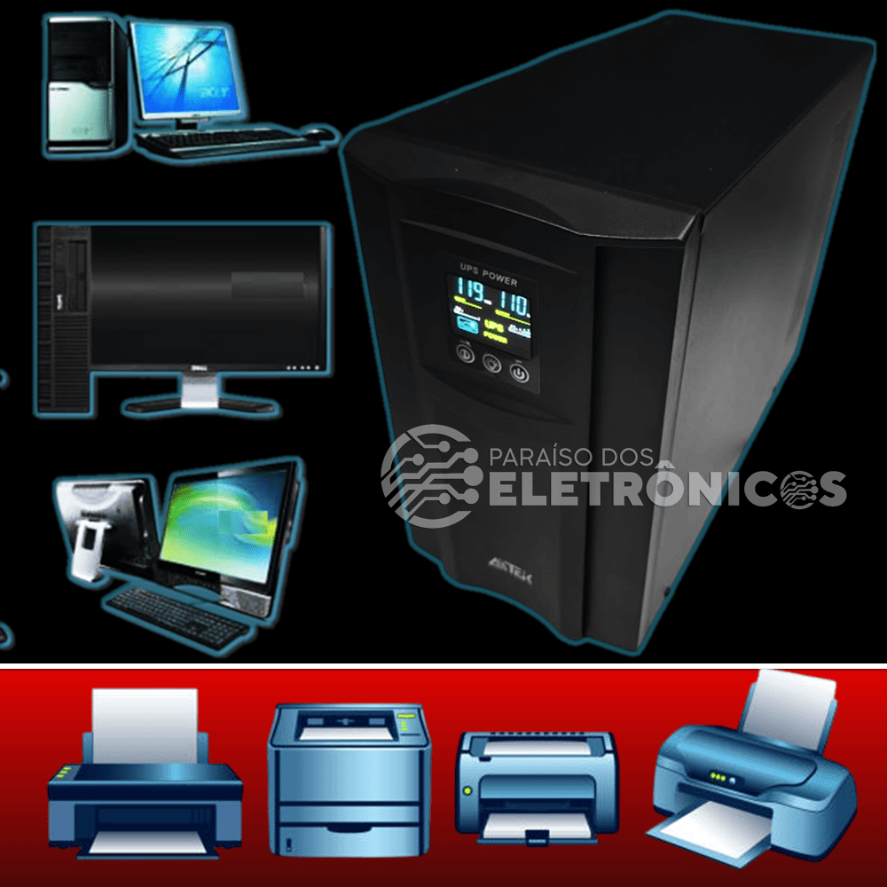 Com capacidade de 3 KVA e potência de saída de 2100 W, ele assegura funcionamento contínuo mesmo durante quedas ou oscilações de energia.