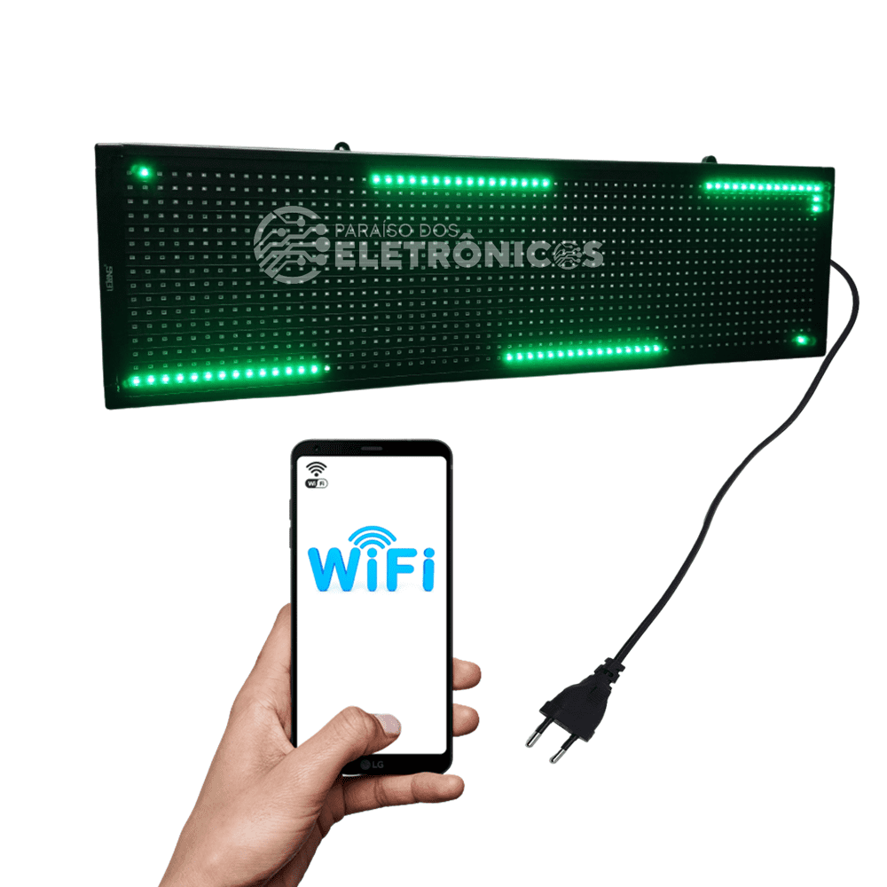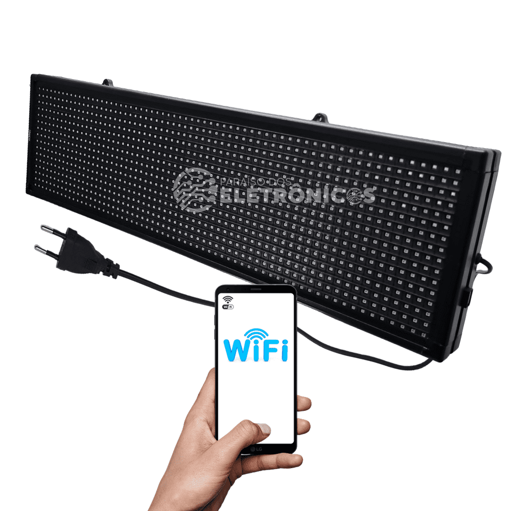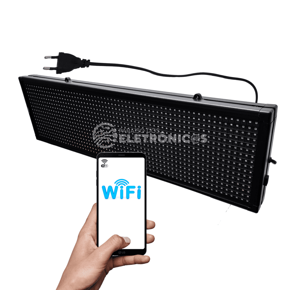 Conectividade WIFI, com essa função o seu painel poderá receber os dados através de Smartphone, computadores, tablet ou qualquer outro Aparelho que tenha Wifi com Android, iOS ou Windows.
